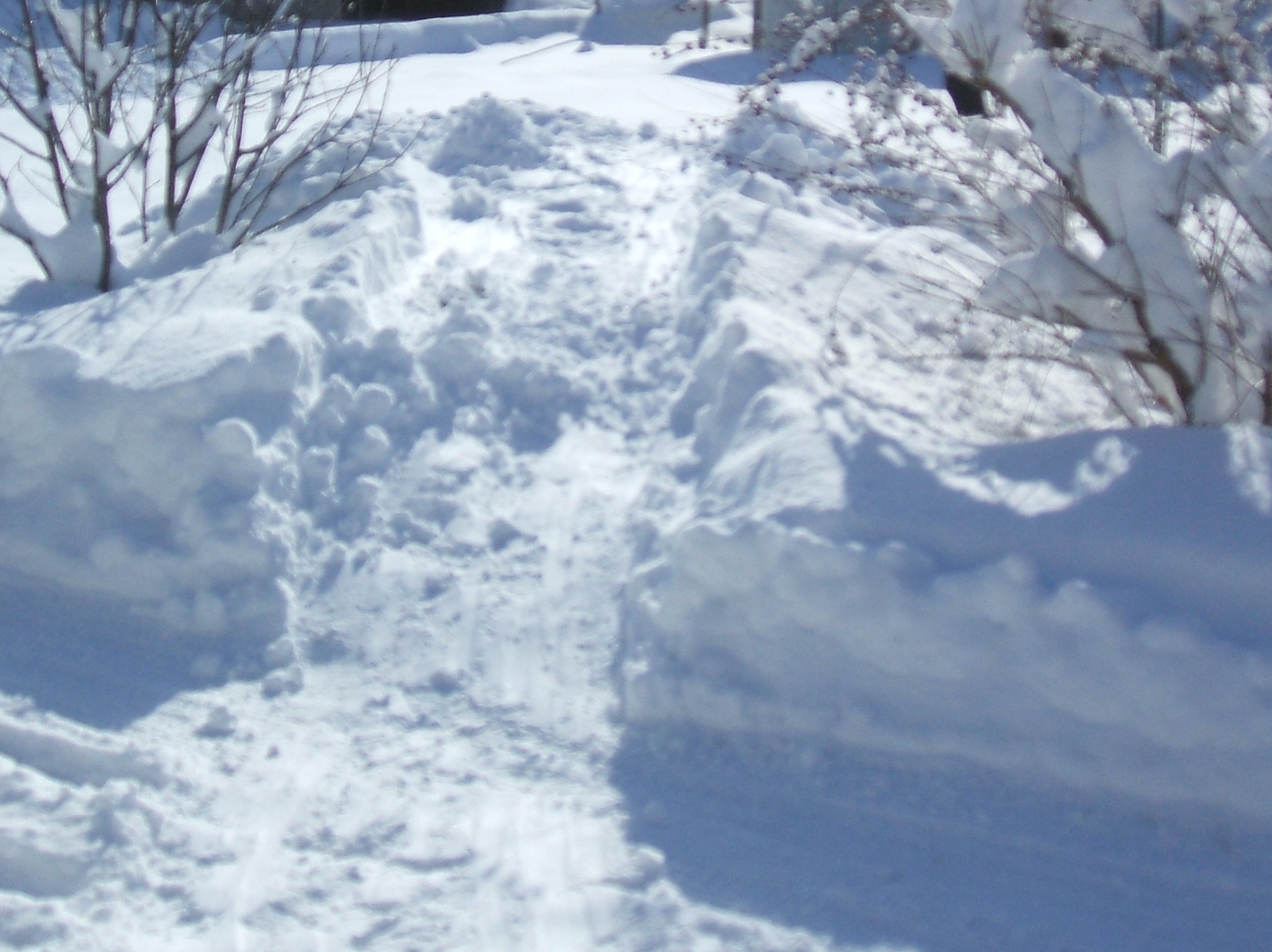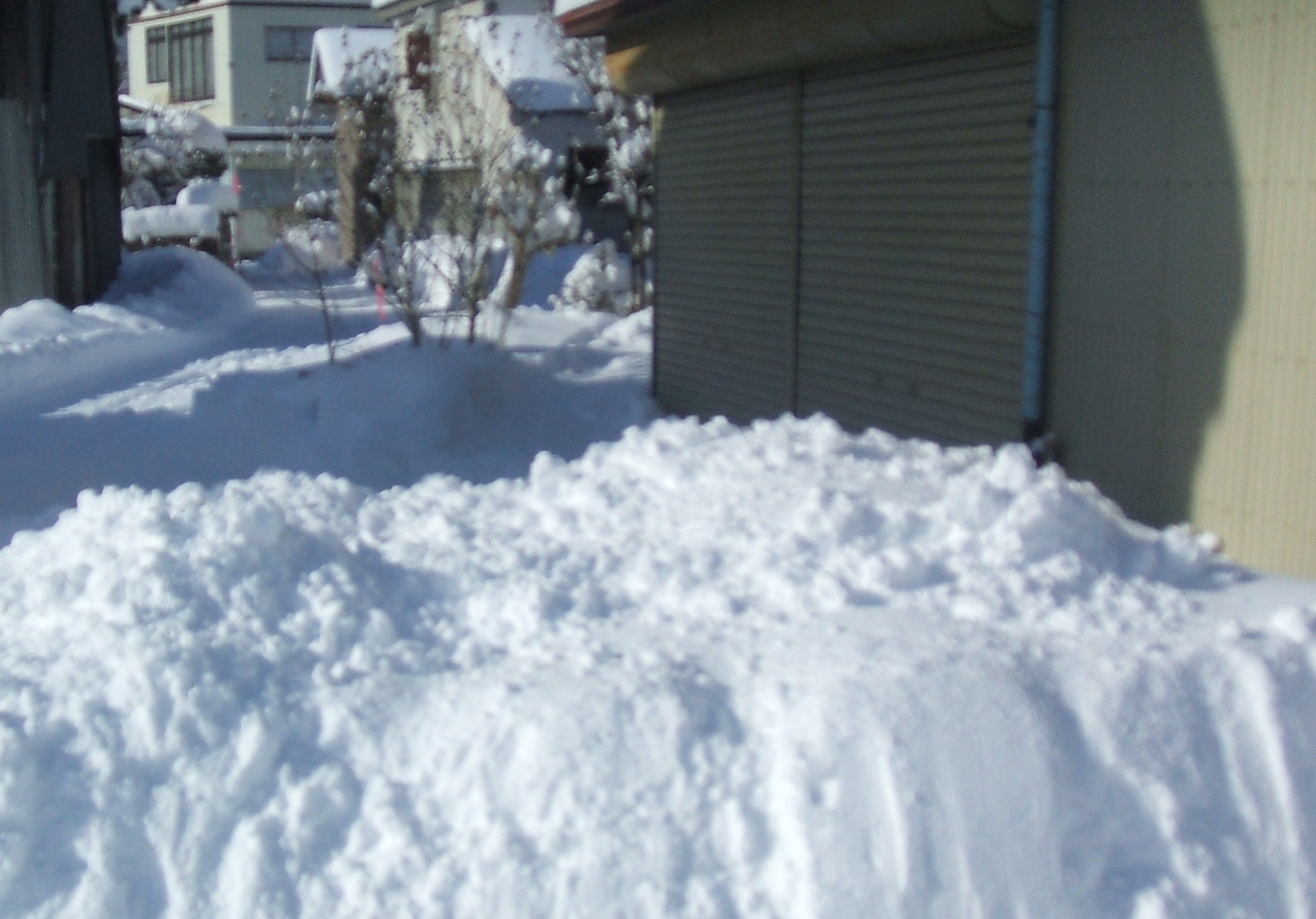 幸い、敷地が広いので、雪捨場には困らない。菜園に近い場所の雪は、そこに押し出す。