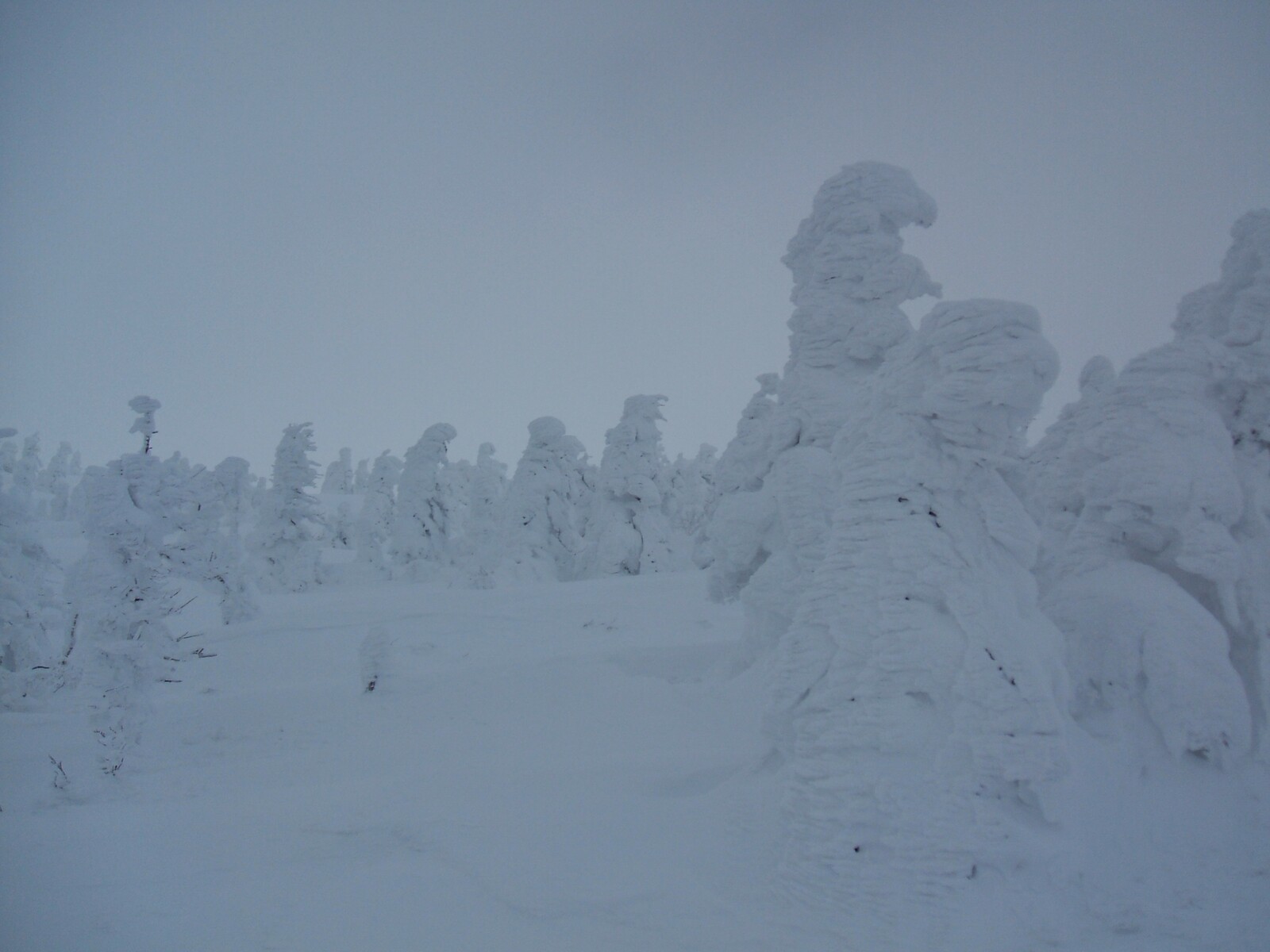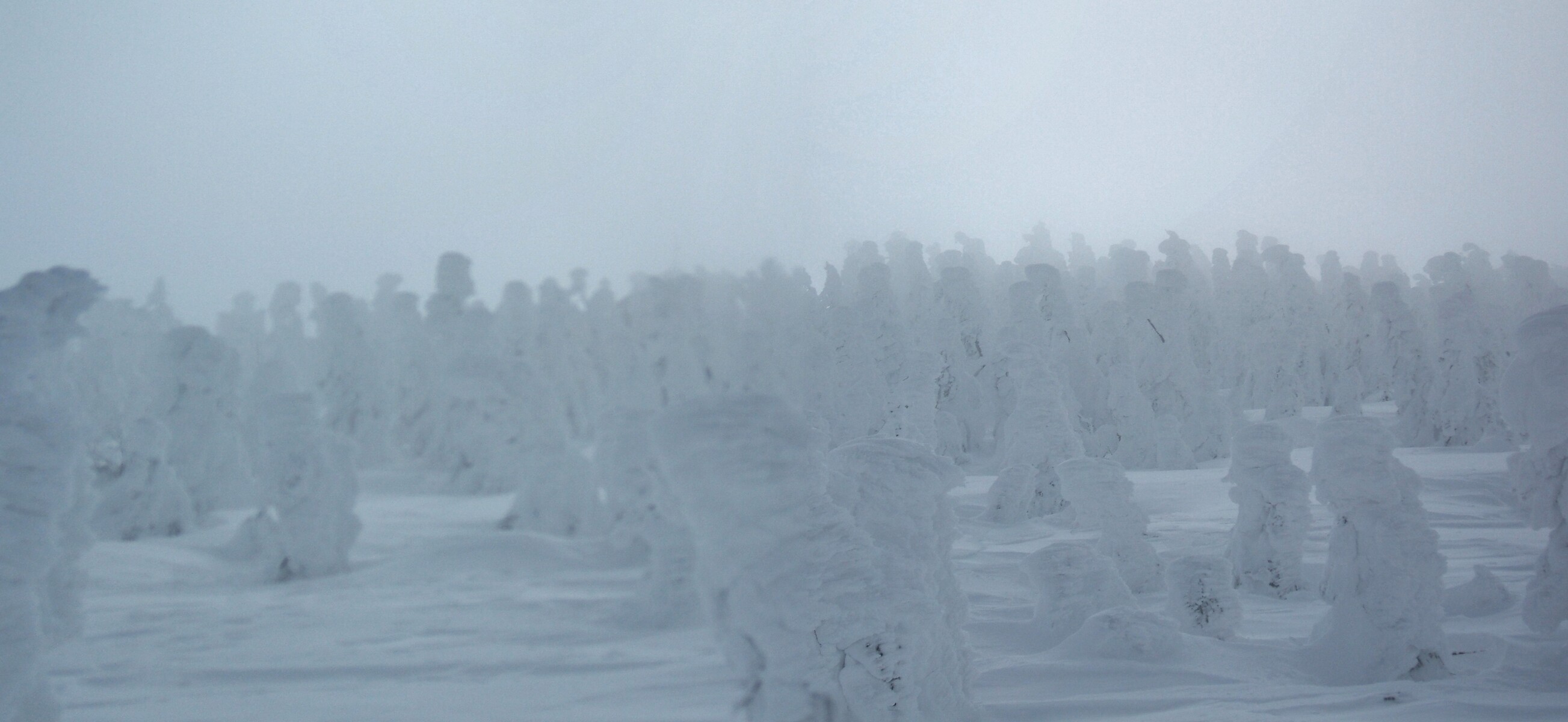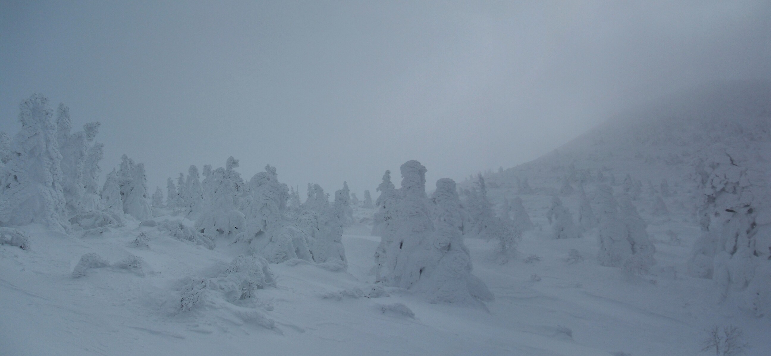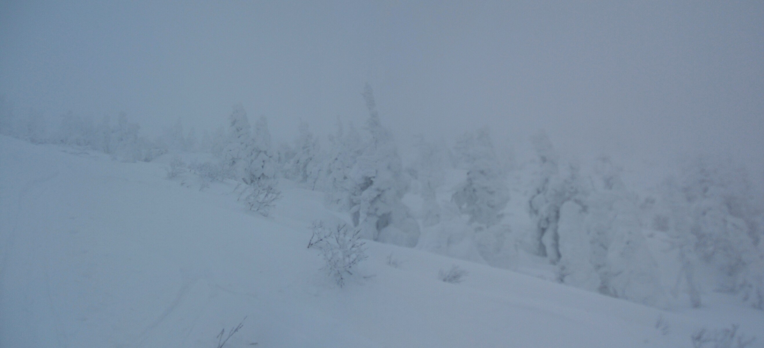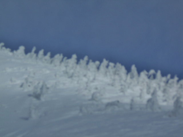 雲の中に入り、視界が悪く為りました・・・樹氷が薄っすらと見えます。