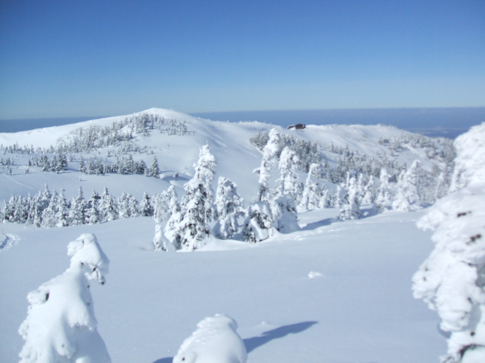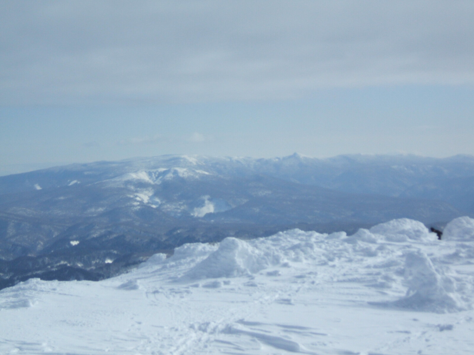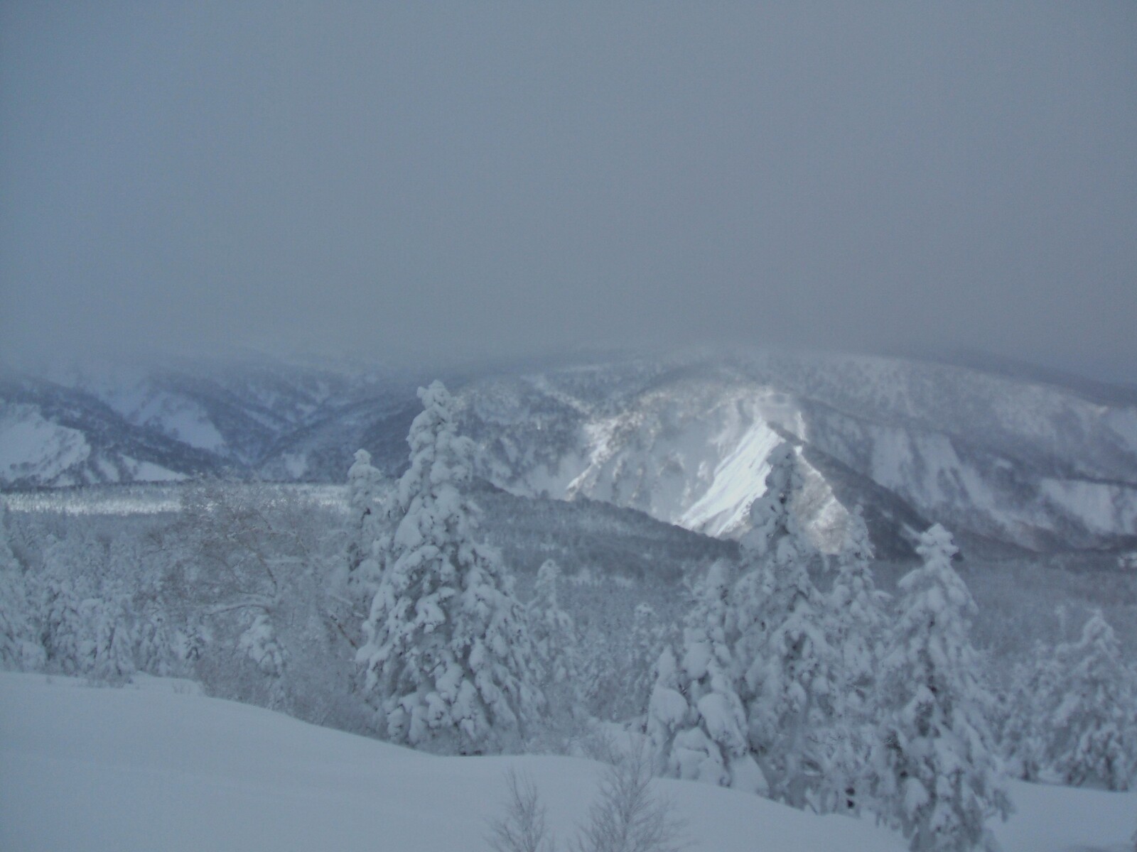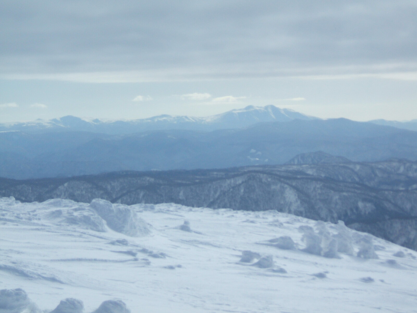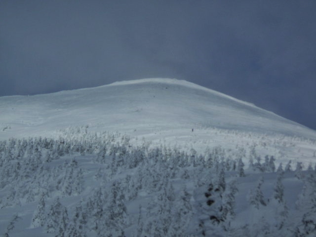 雲の中に入り、視界が悪く為りました・・・樹氷が薄っすらと見えます。