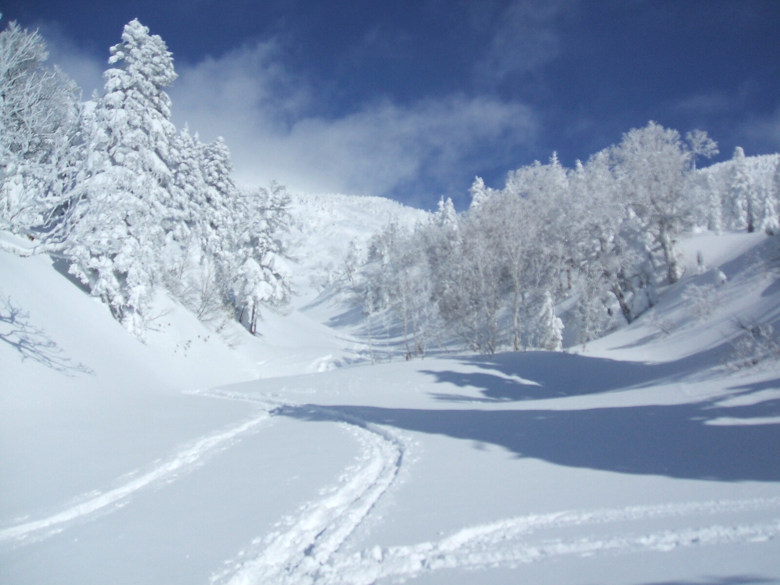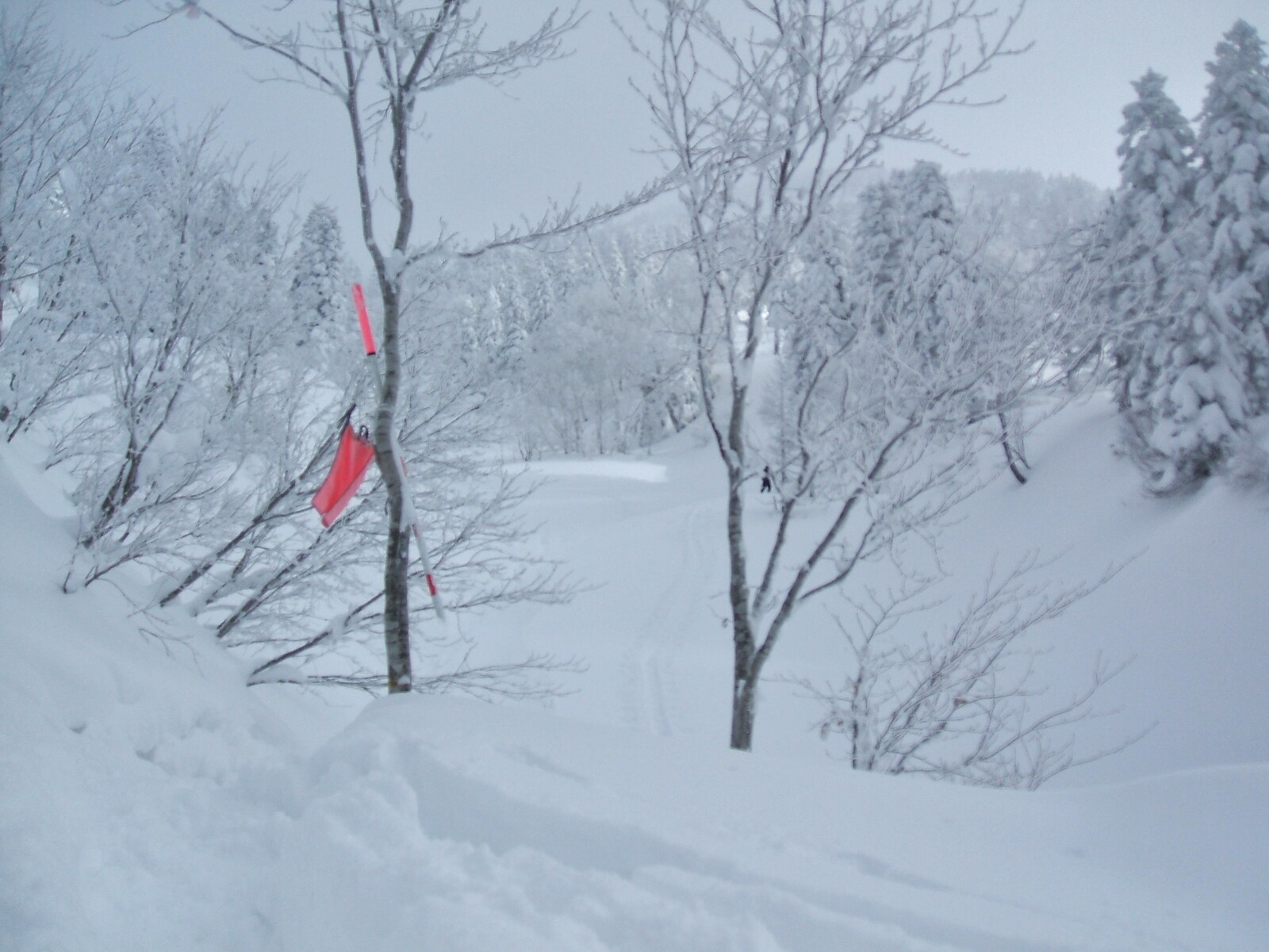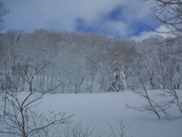 後は、ダーッと・・・地獄湯の沢の右岸⇔左岸を、振り子の様に滑り・・・分岐へ。
