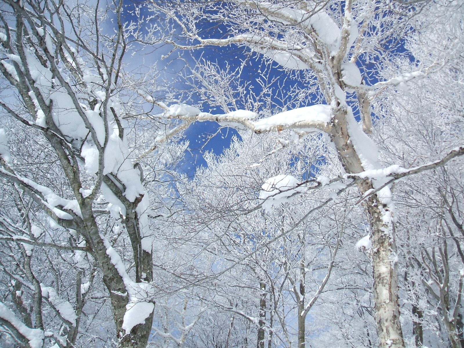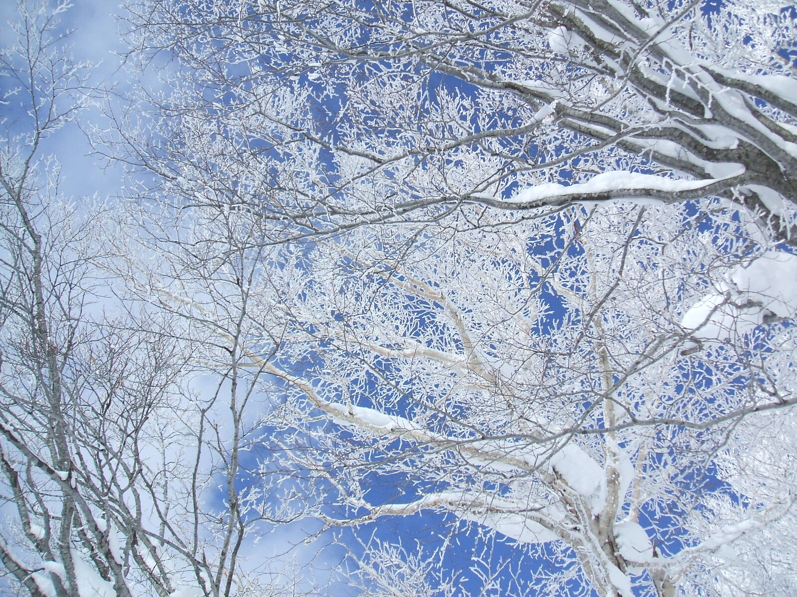 見上げると・・岳樺に霧氷が・・・