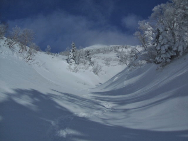 安全な、地獄湯の沢伝いに滑る事に・・・