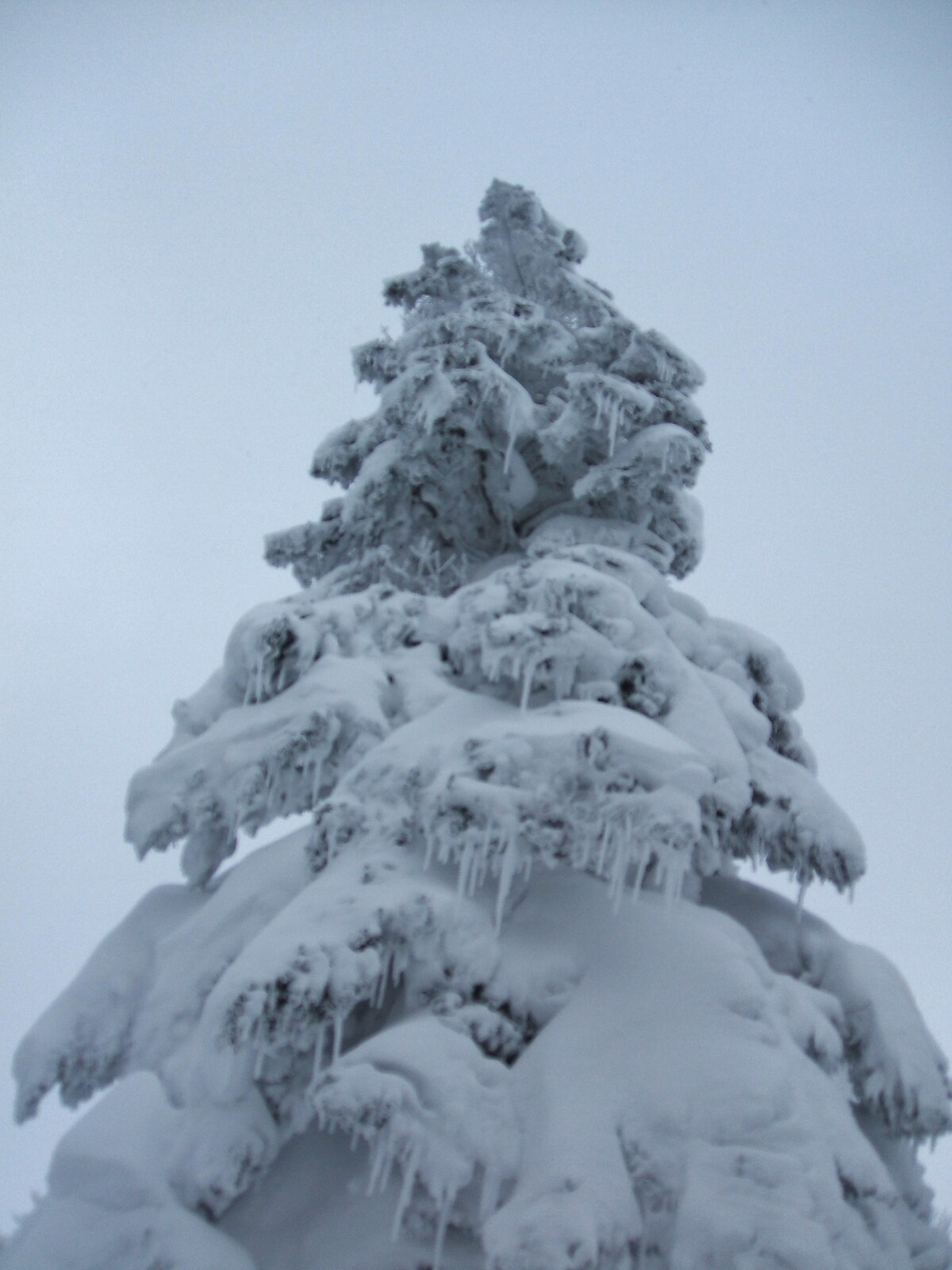青森トド松の巨木。融けた雪がツララに・・・
