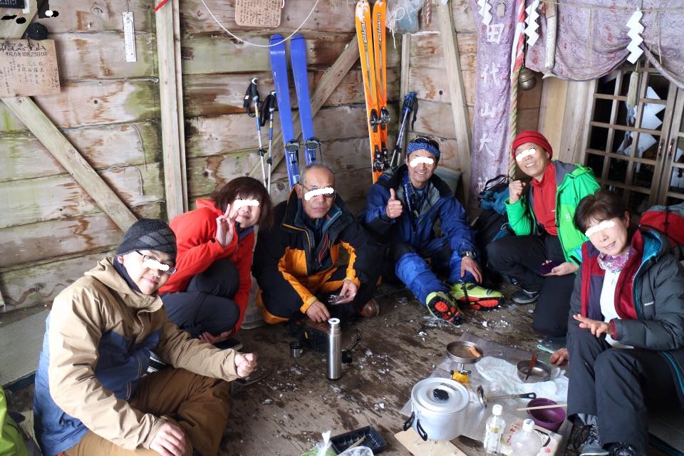 春スキーで、中央ルートを通る者が立ち寄る程度・・・ドンピシャ小屋脇に出ました。