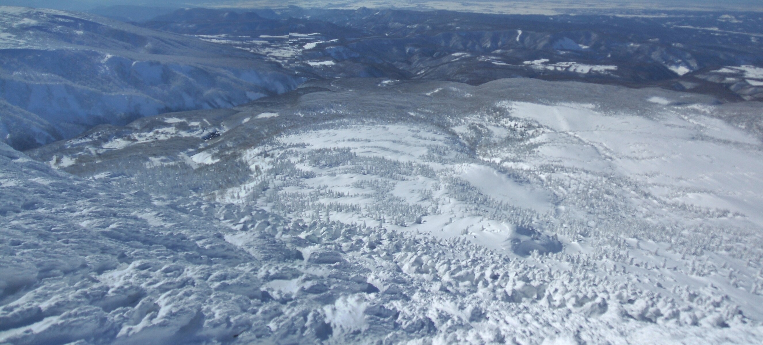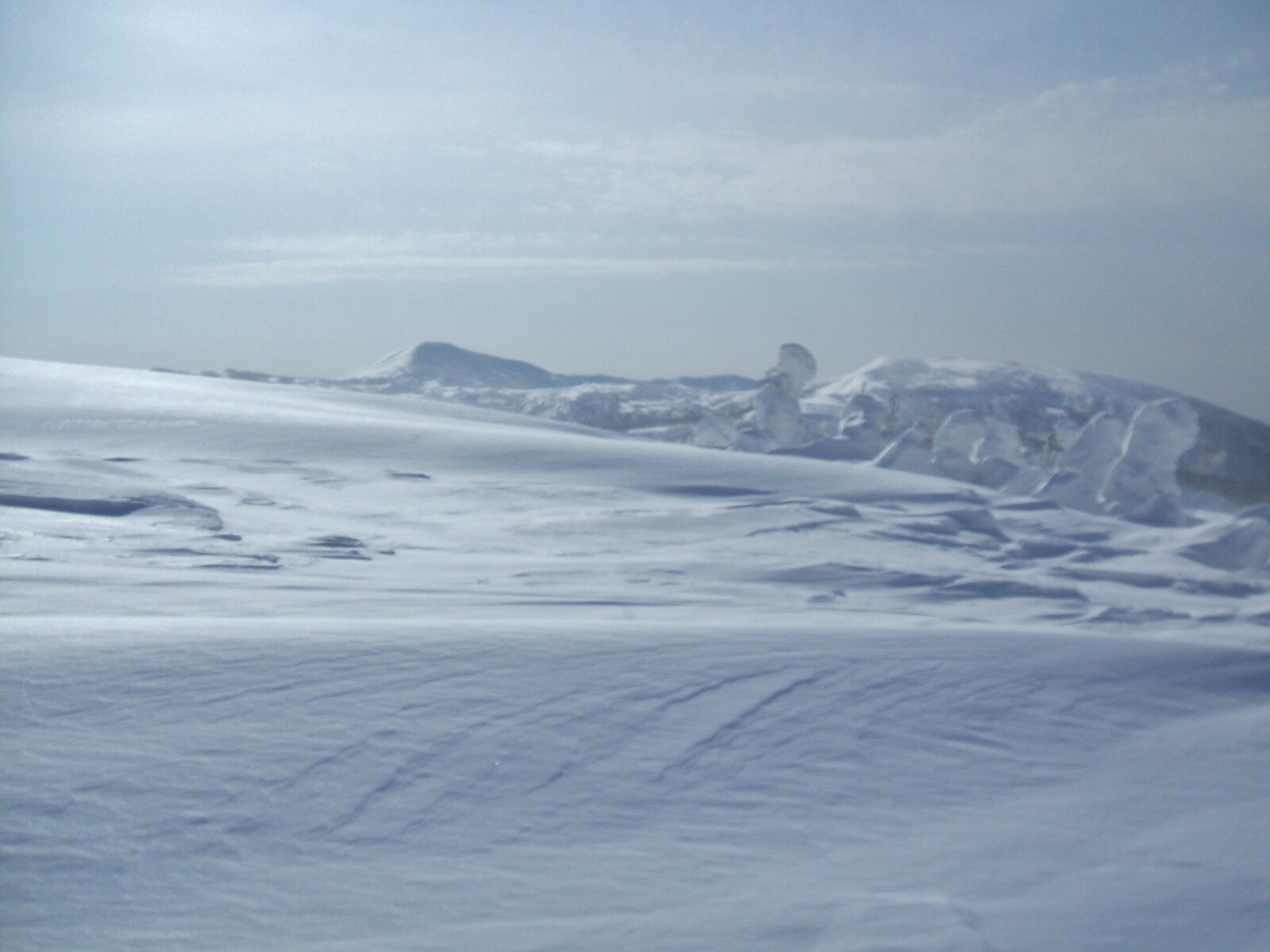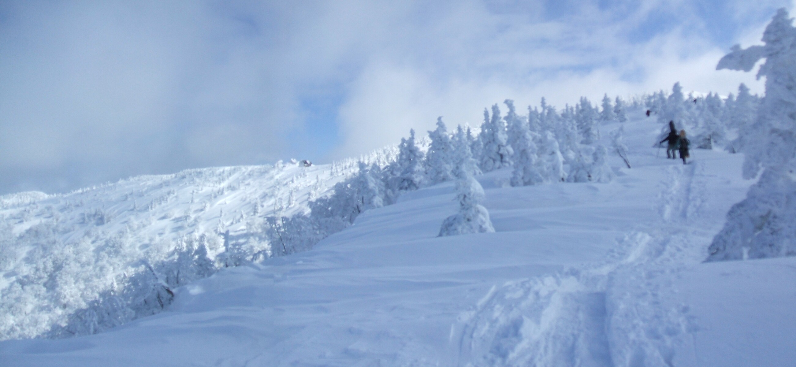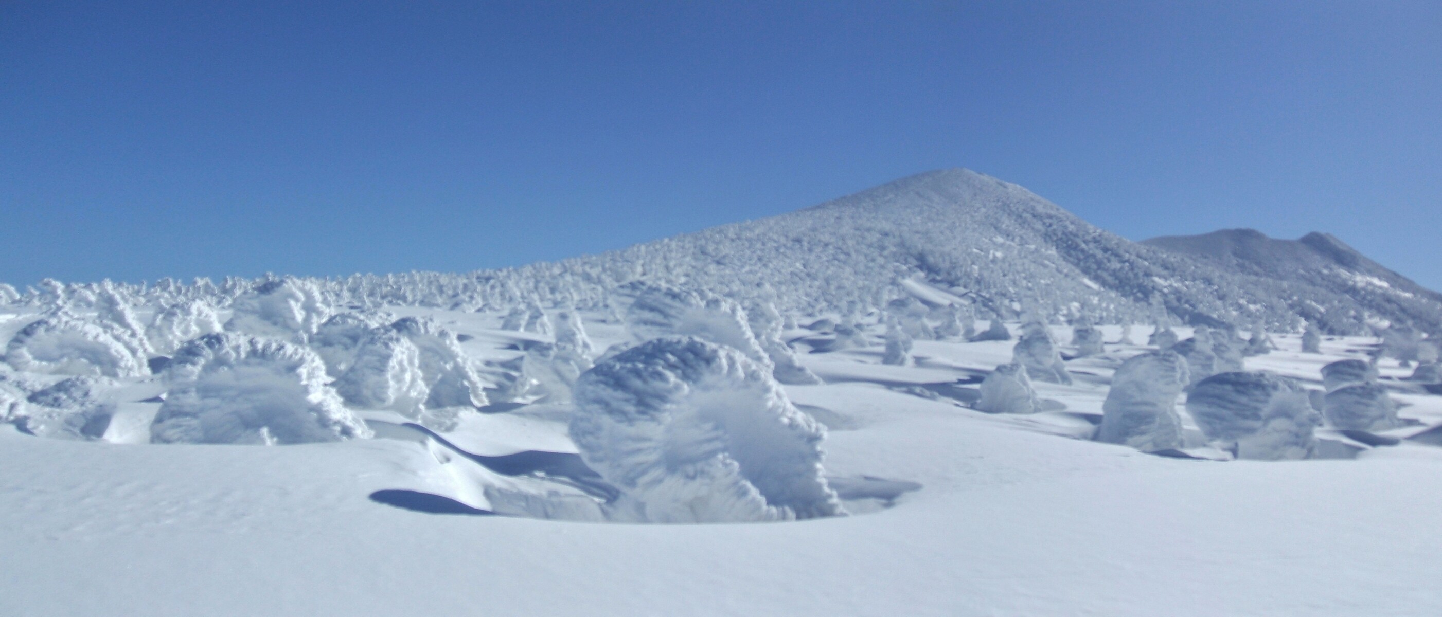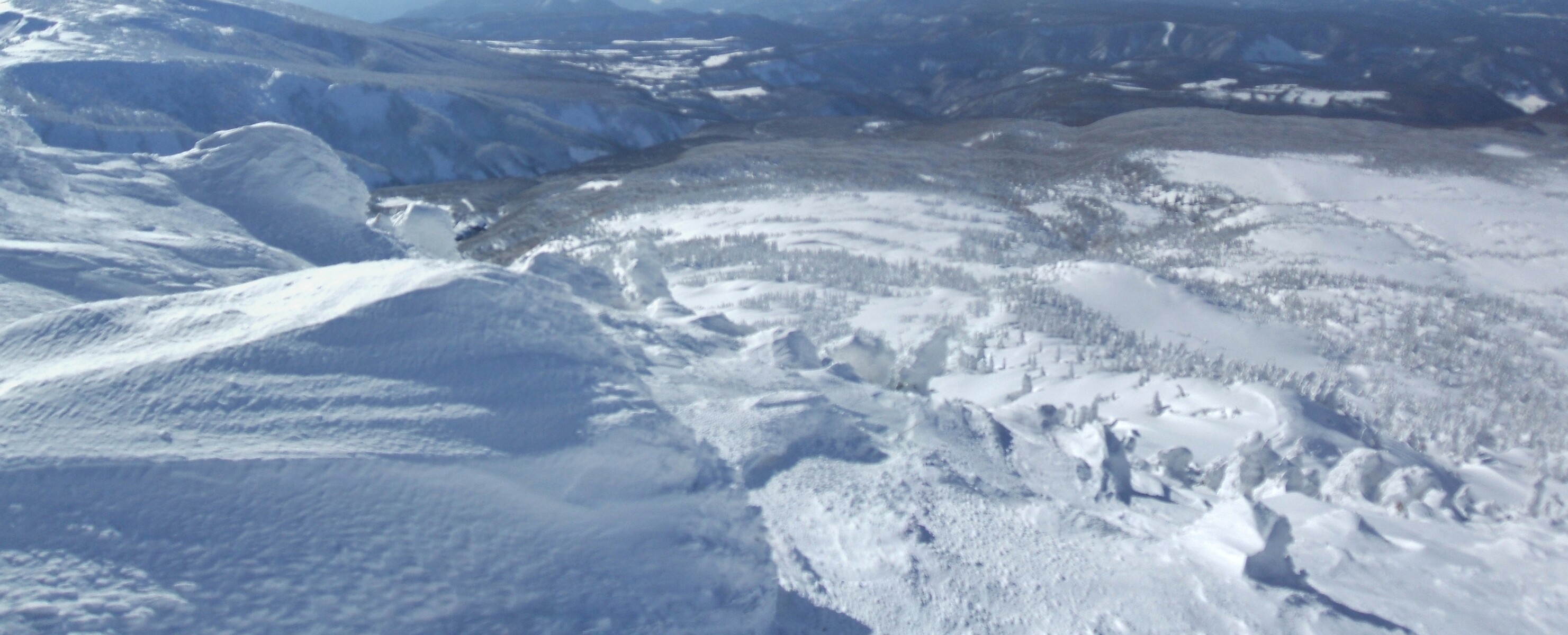 山頂にはガスが掛かり、樹氷も先の爆弾低気圧のお陰で落ちてしまってる・・・