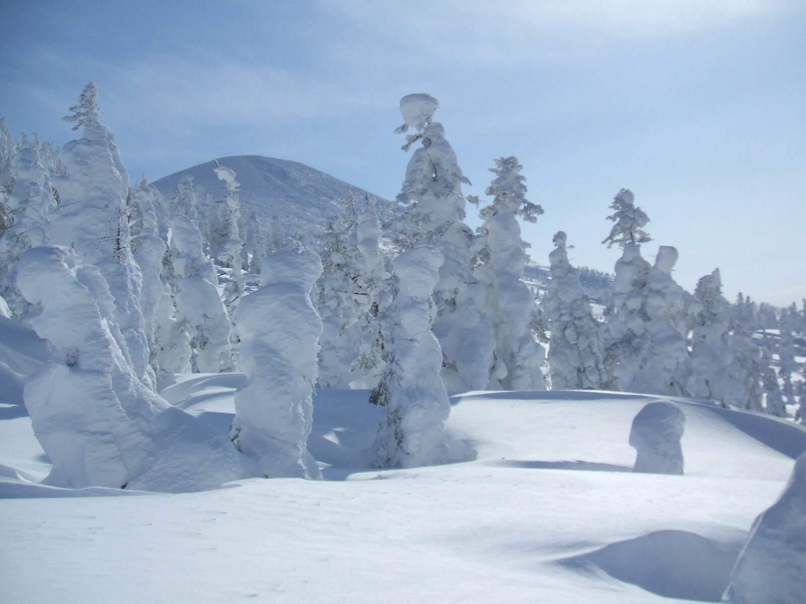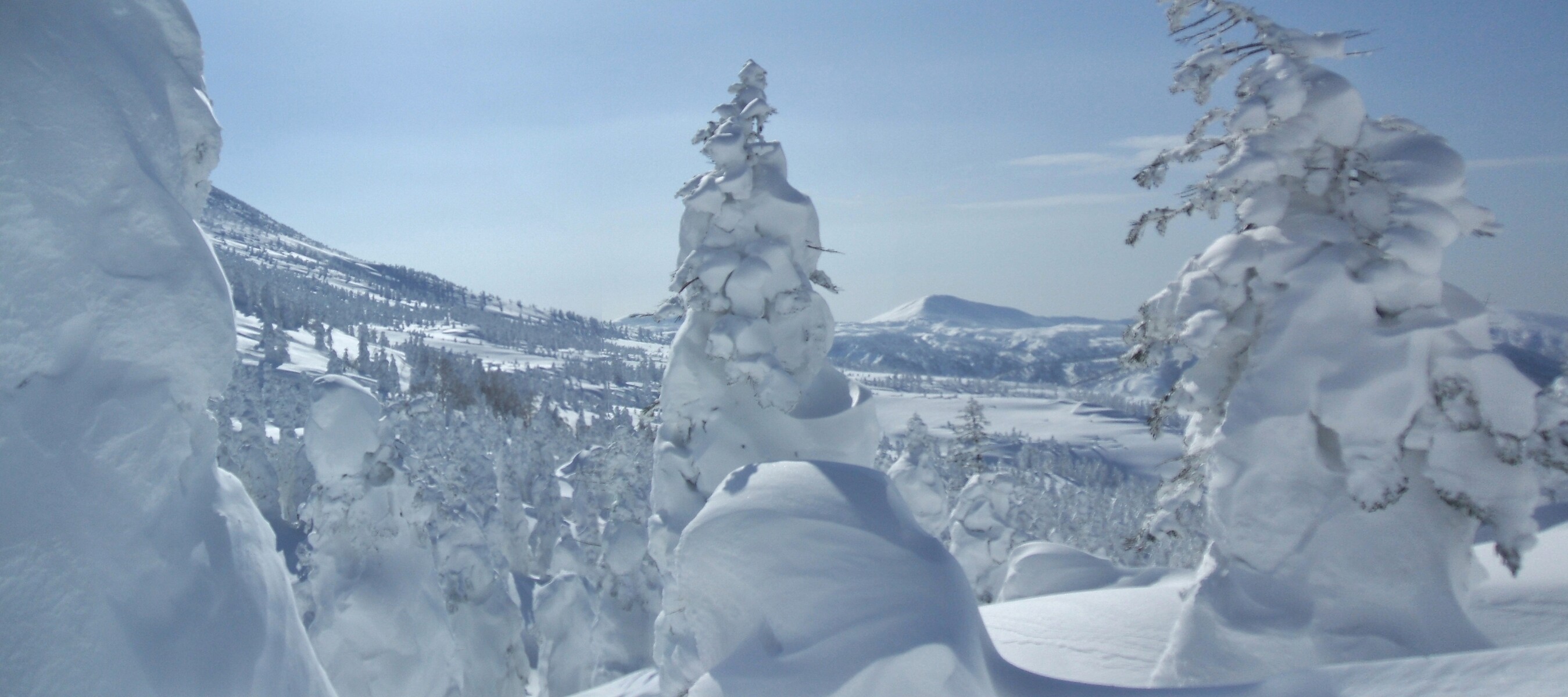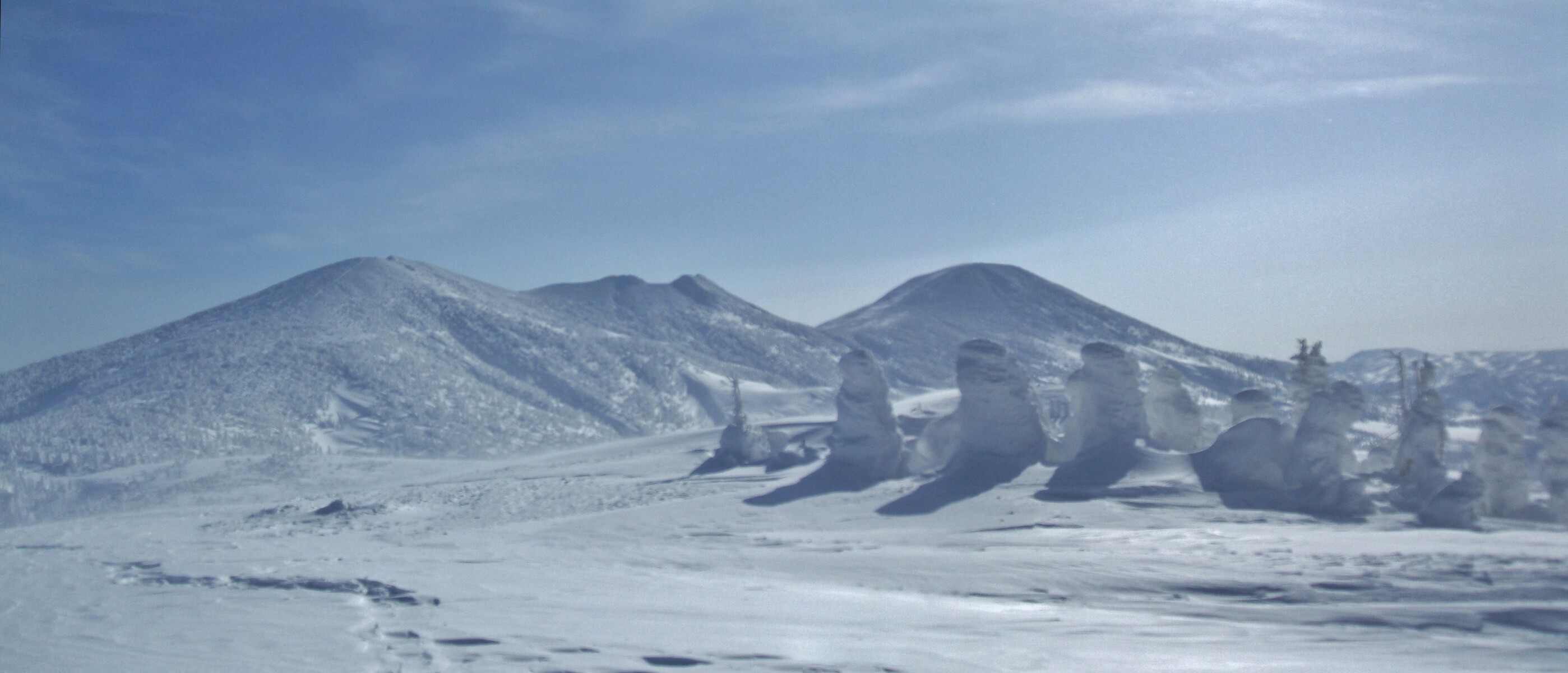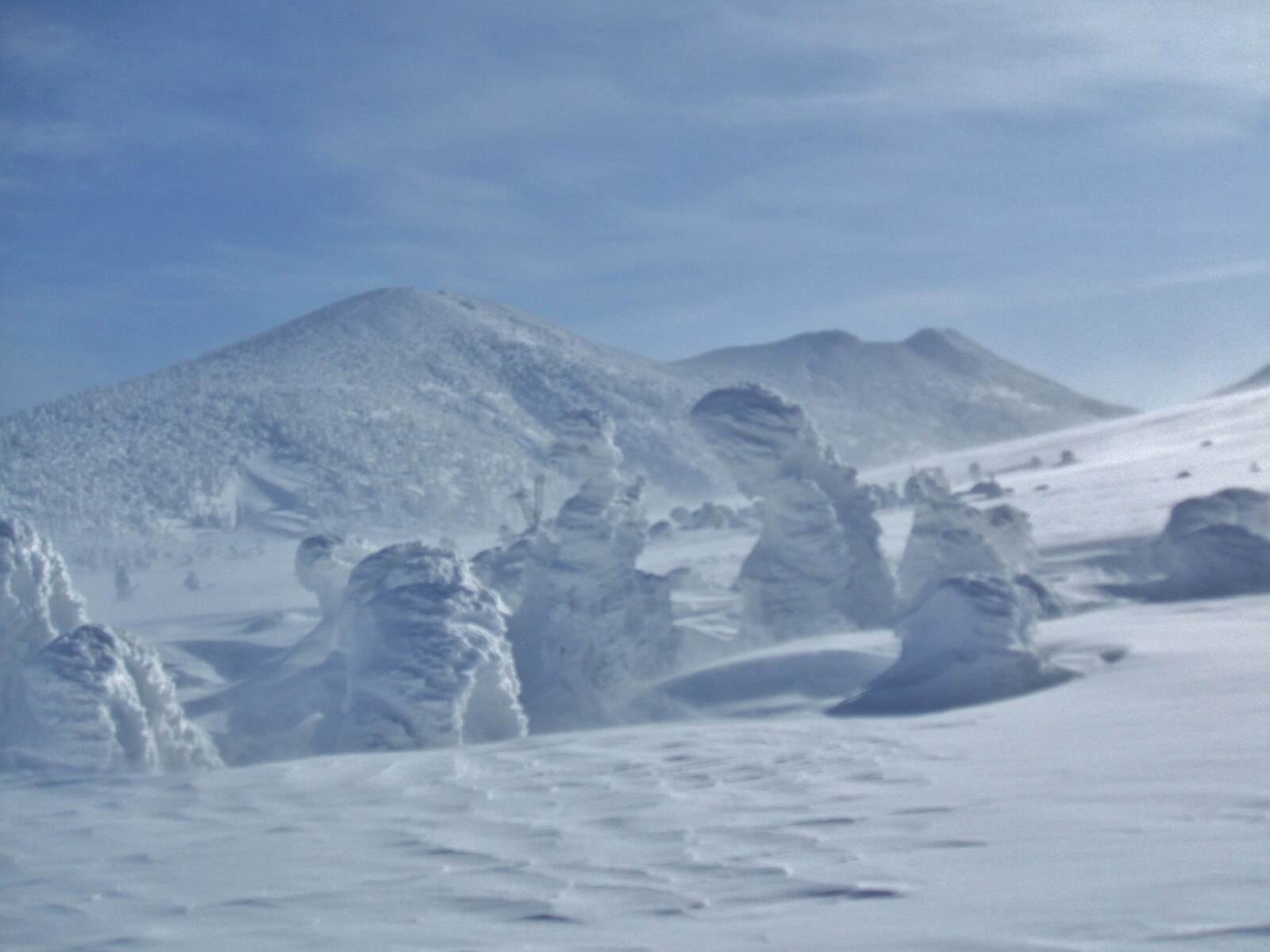 山頂にはガスが掛かり、樹氷も先の爆弾低気圧のお陰で落ちてしまってる・・・
