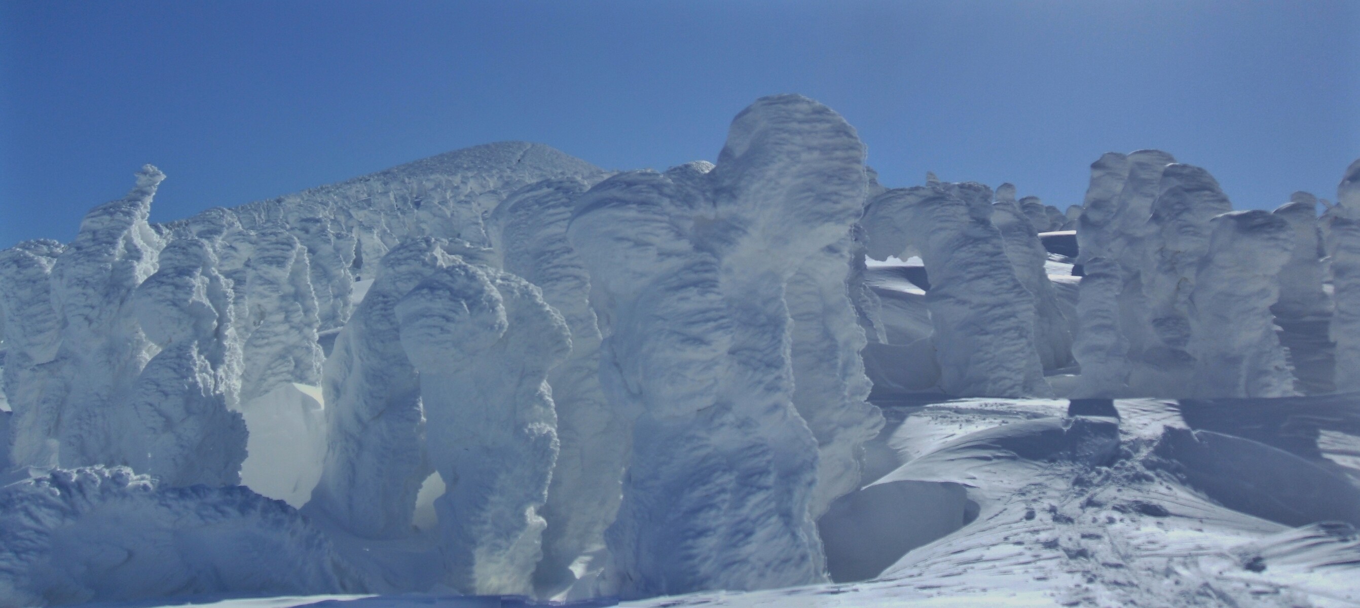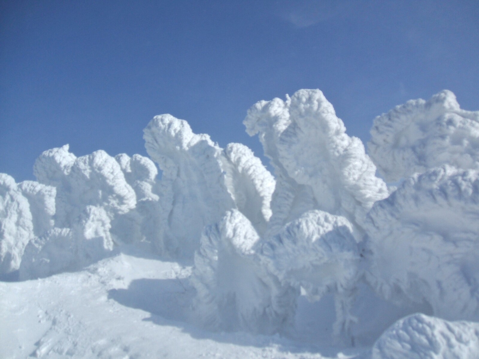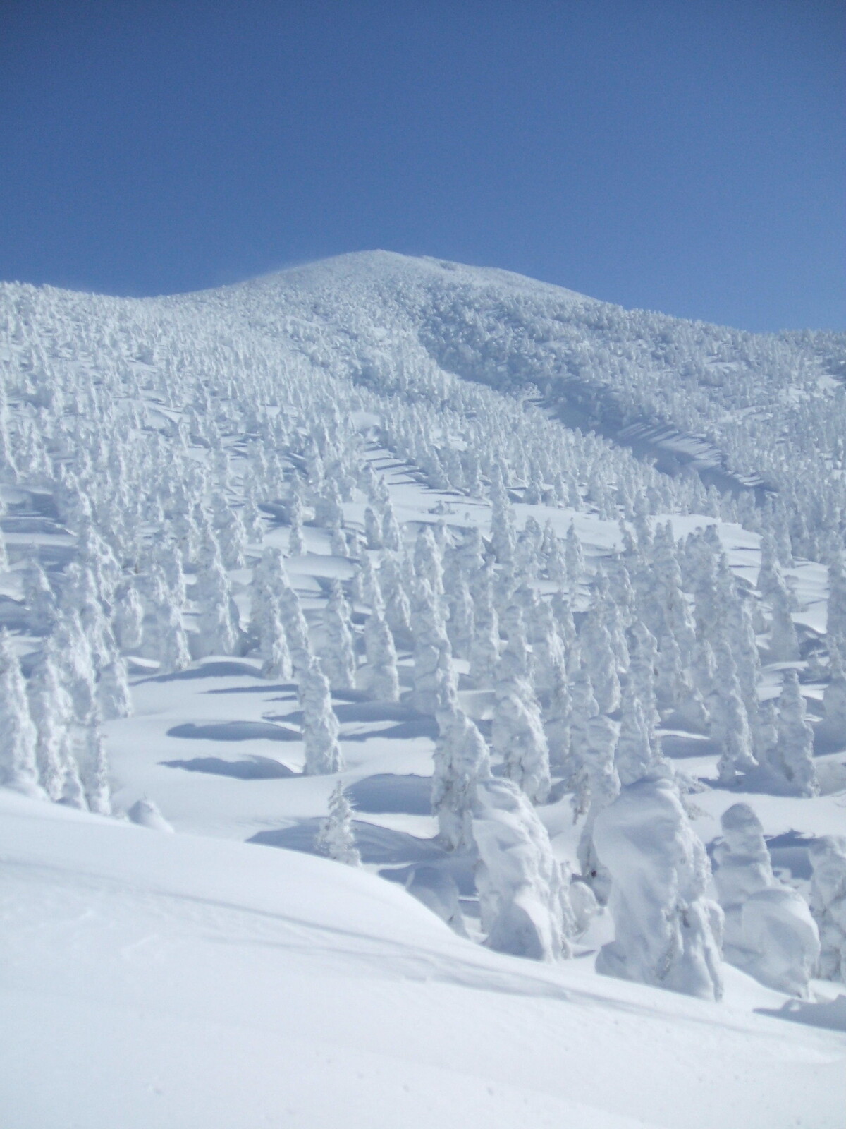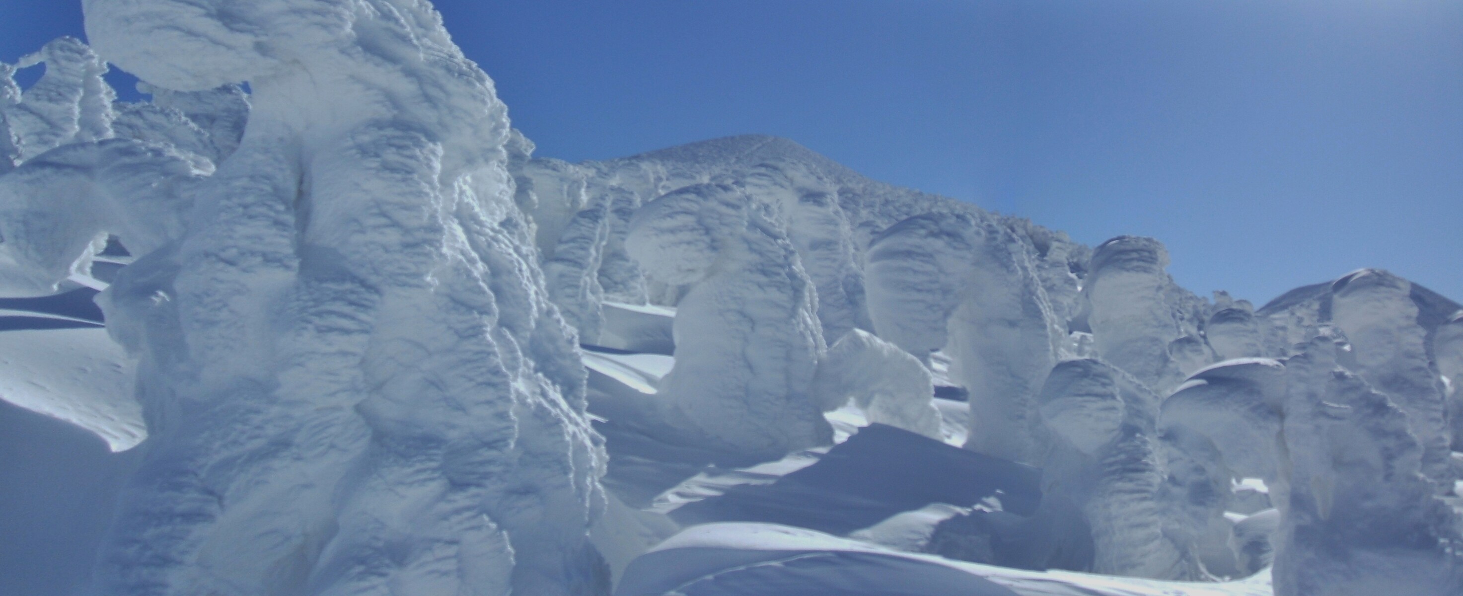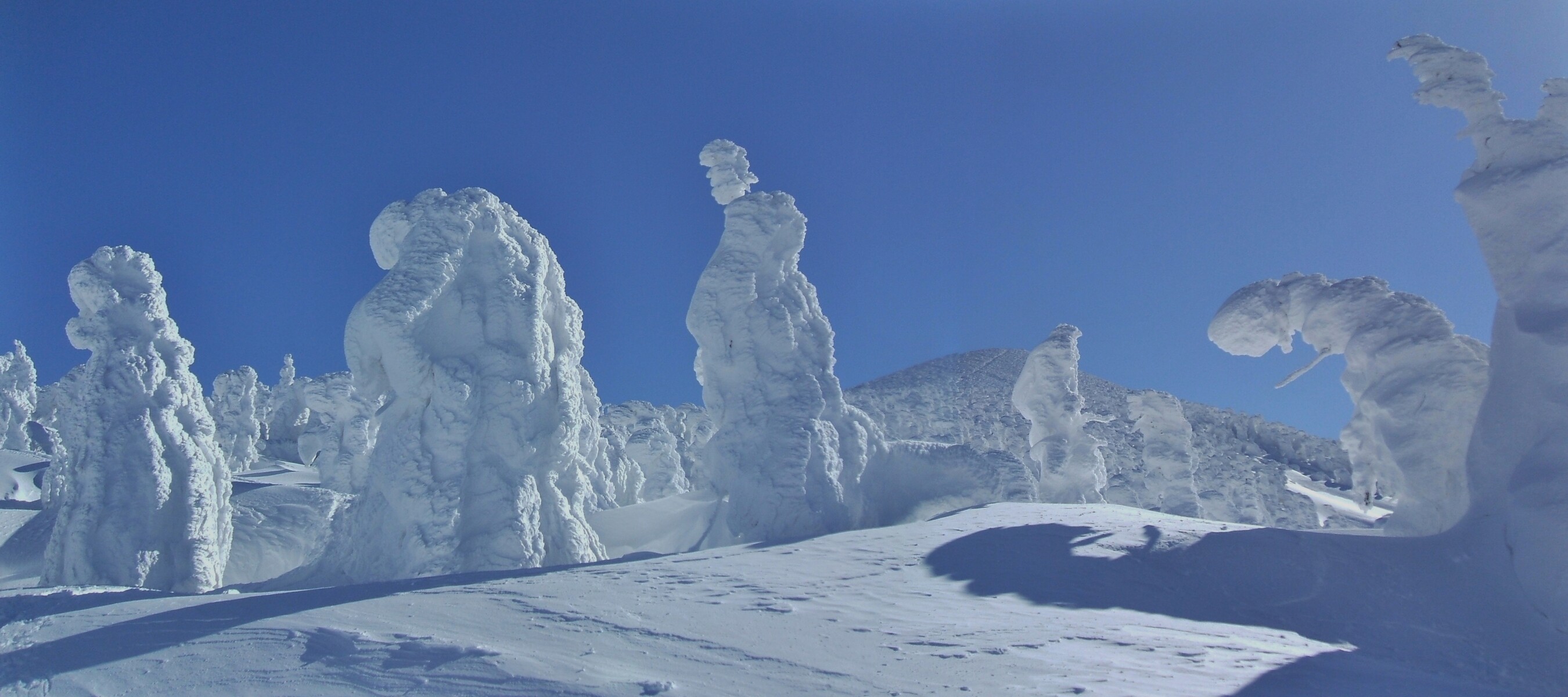 山頂にはガスが掛かり、樹氷も先の爆弾低気圧のお陰で落ちてしまってる・・・