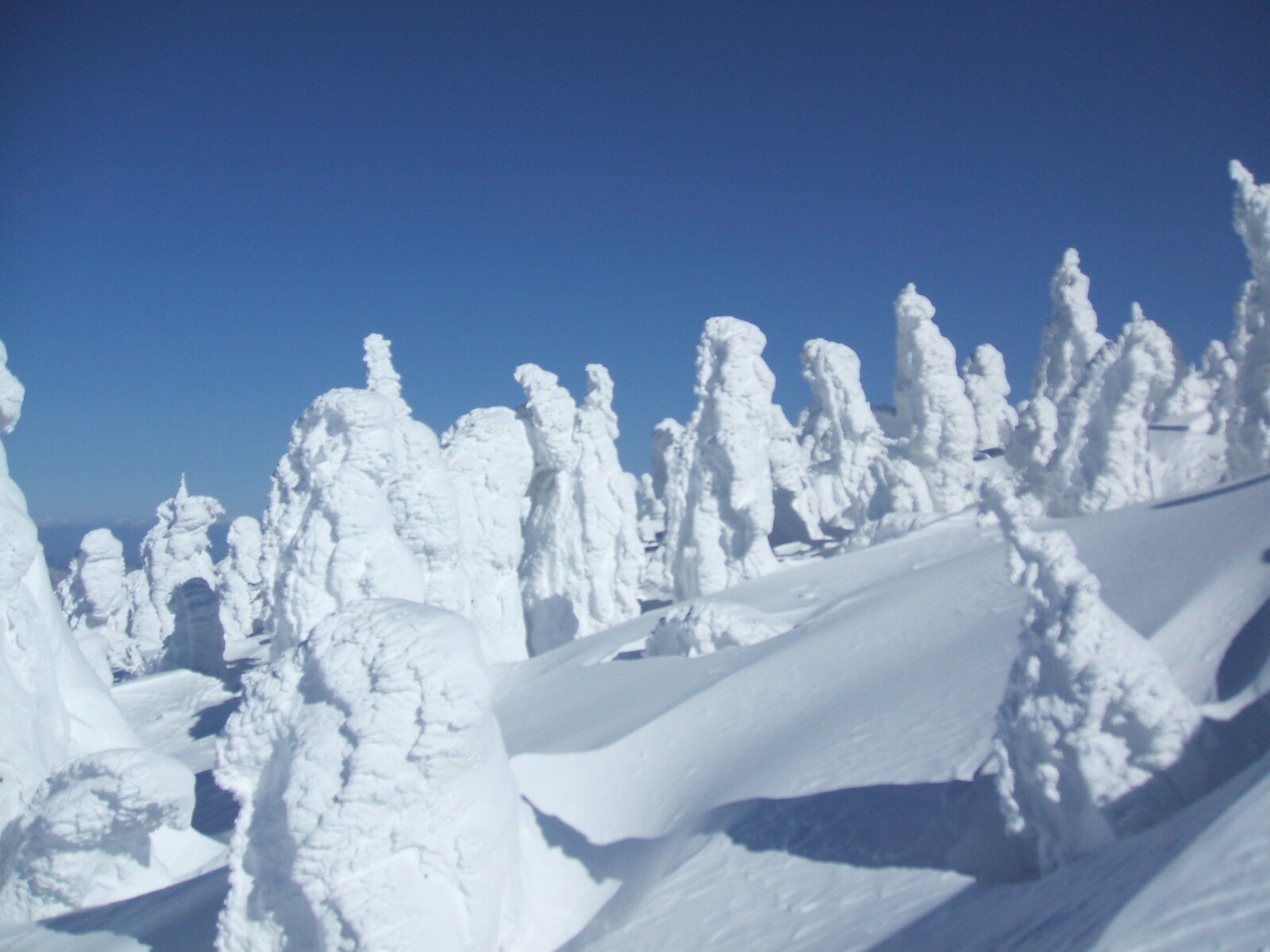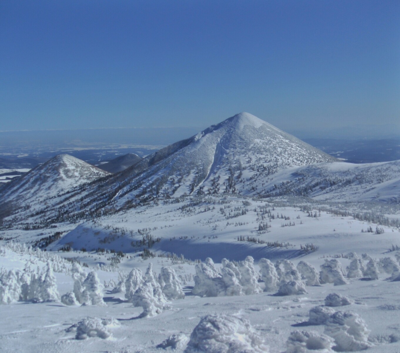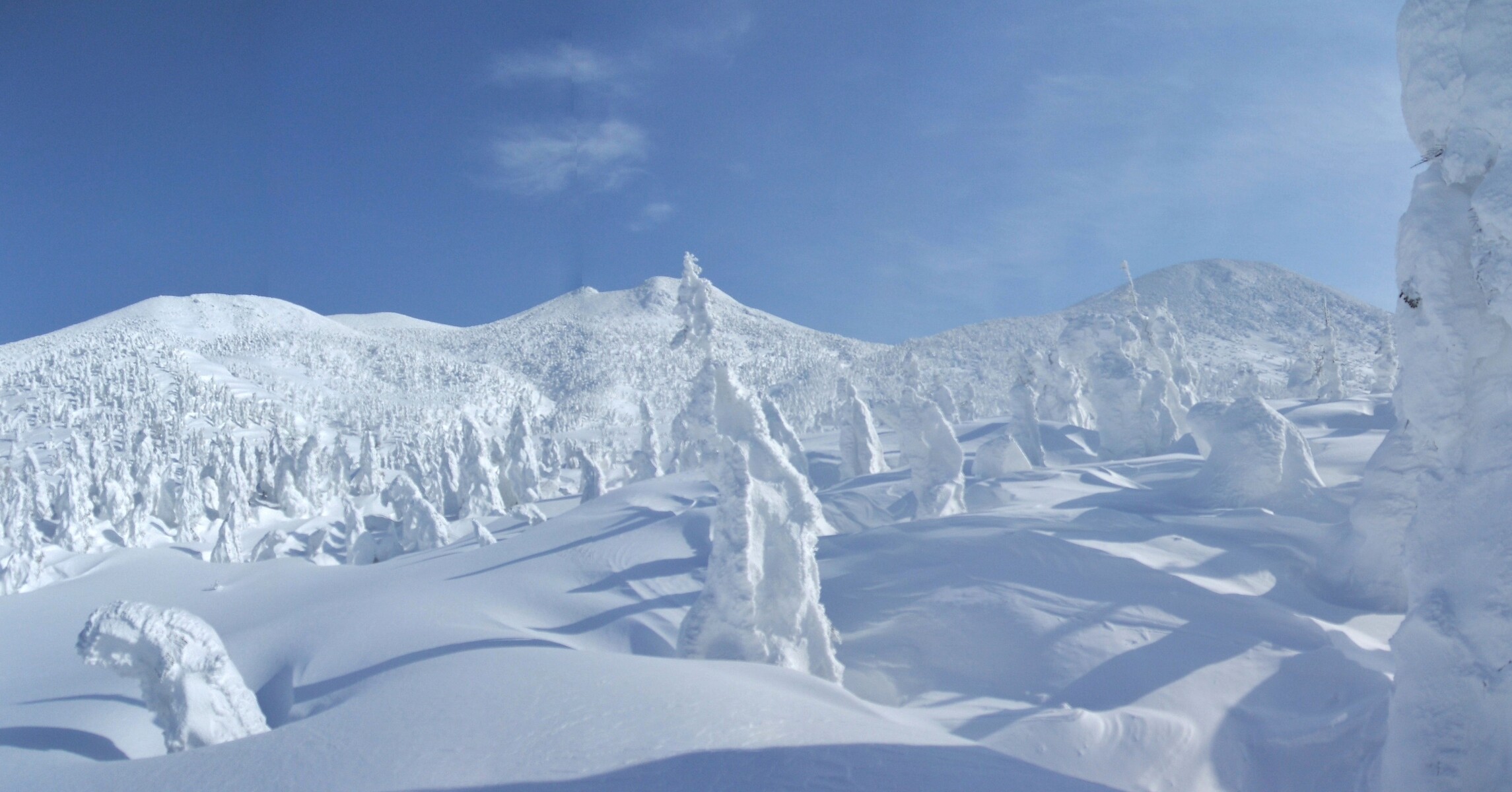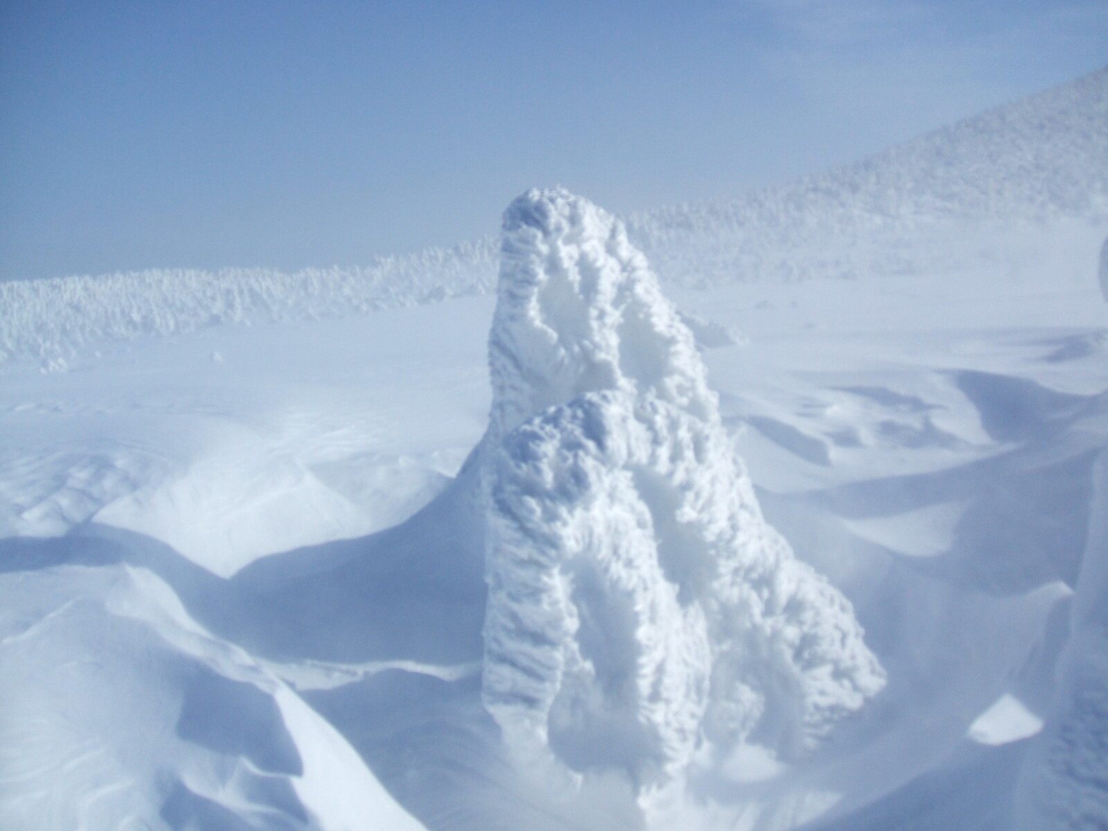 山頂にはガスが掛かり、樹氷も先の爆弾低気圧のお陰で落ちてしまってる・・・