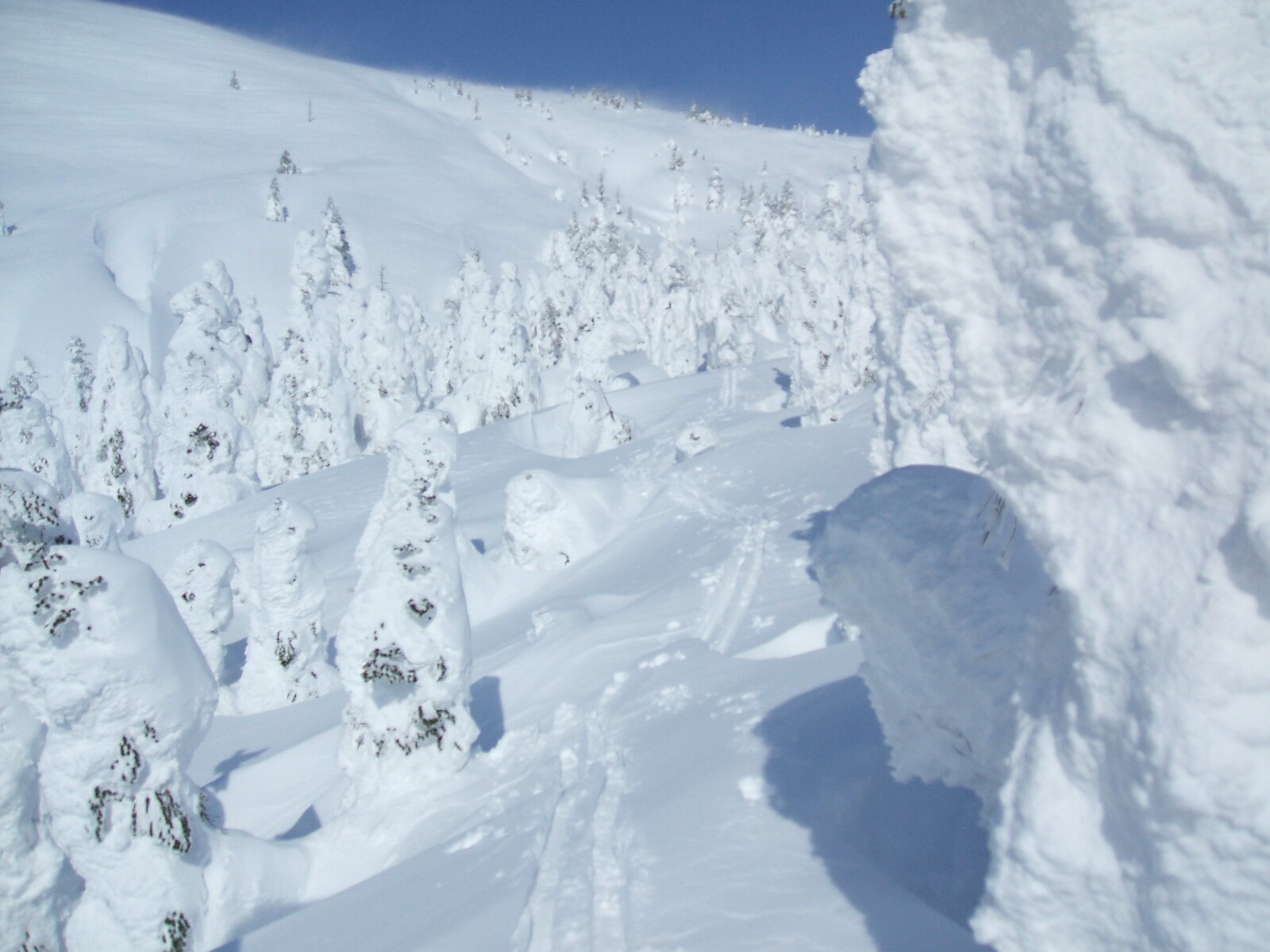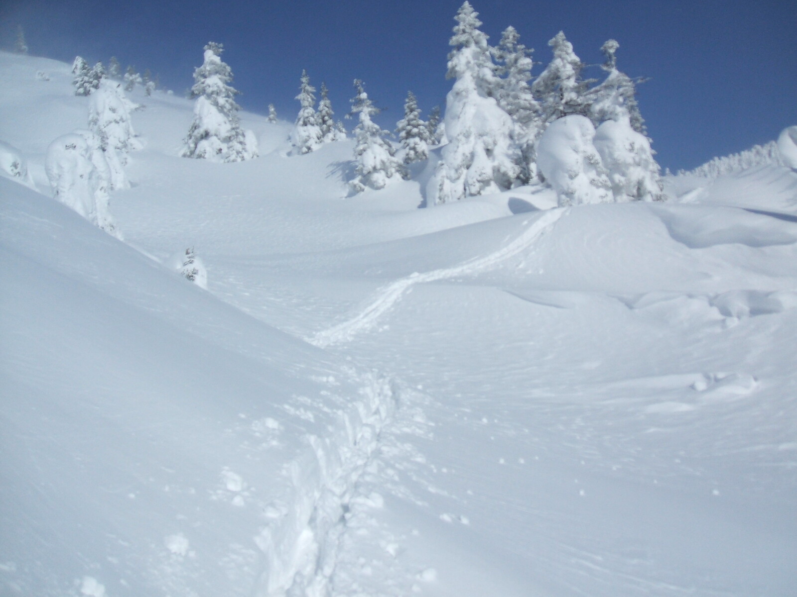 モンブラン登頂者の◯◯女史が単独で・・・山頂に向かわず、森吉神社の方で滑ってたらしい・・・寒さで口が廻らず、上手く会話出来なかったが、連瀬沢へもう一本滑って帰ると。