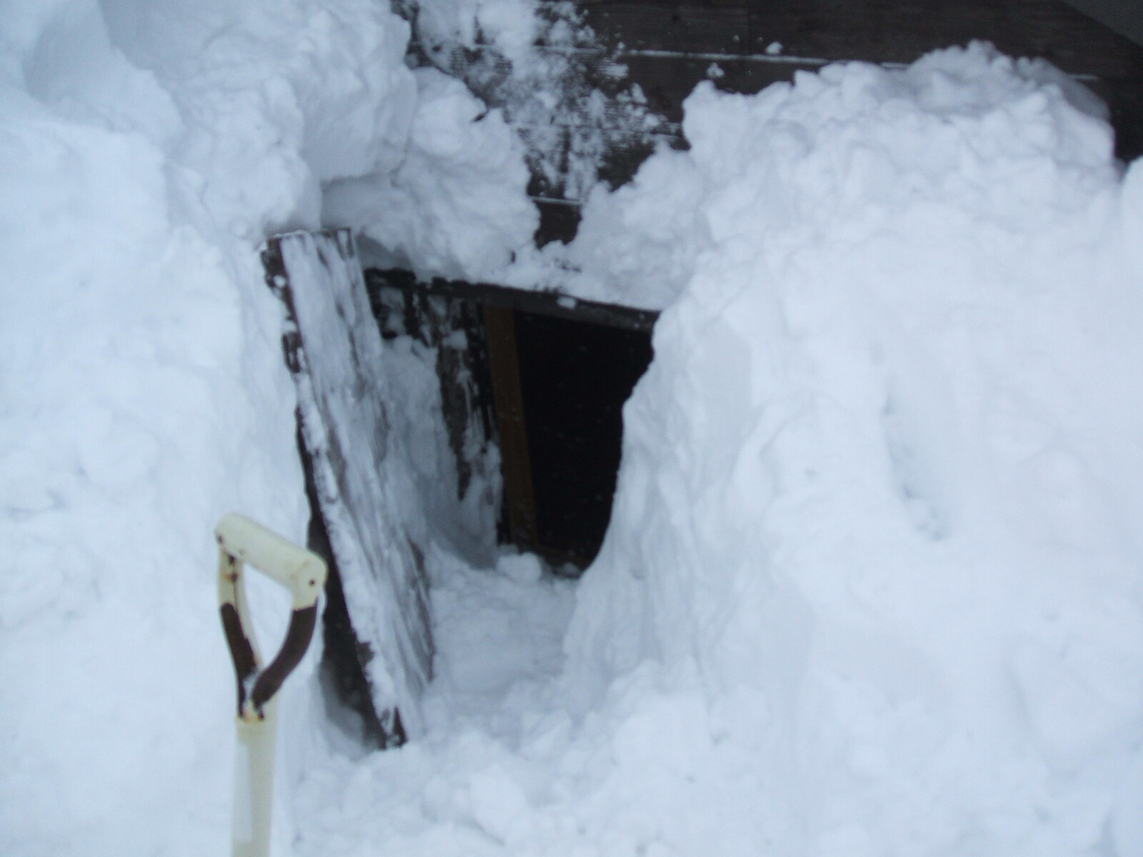 掘り進むと・・・外れた冬戸が、雪の中から出て来た・・・