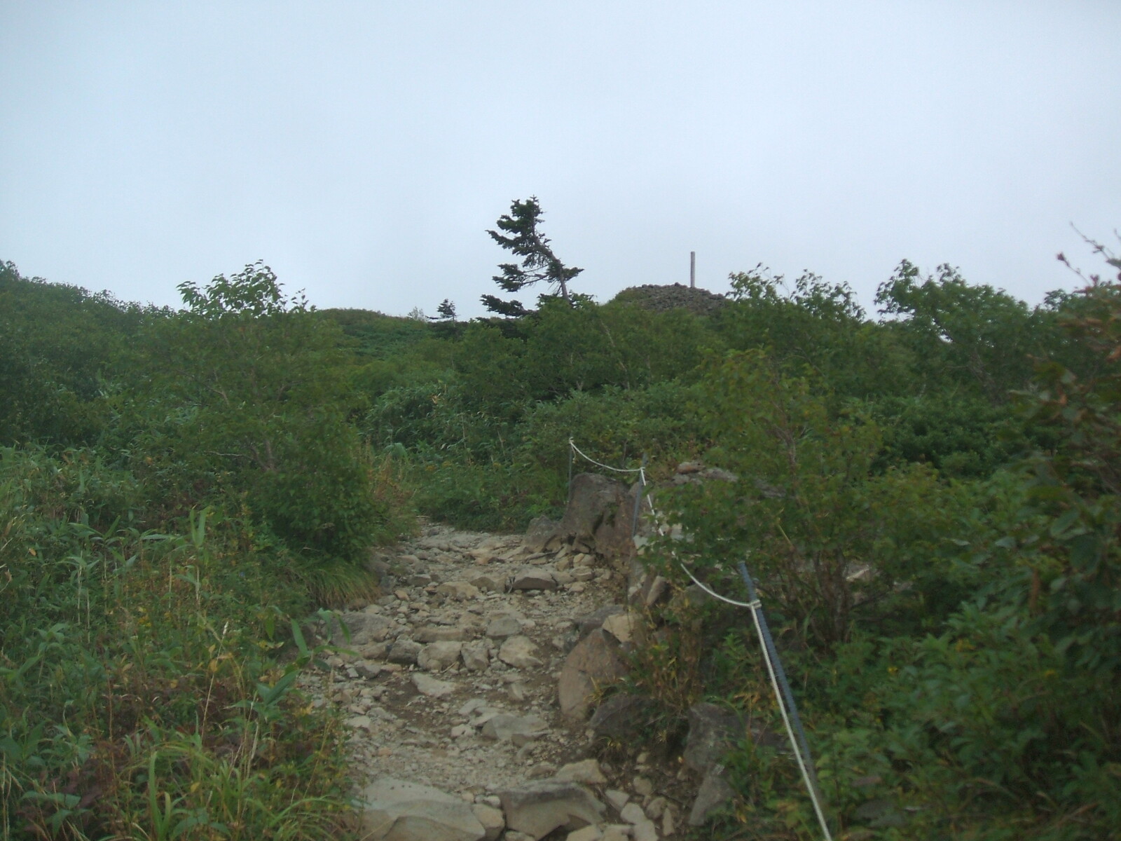 阿仁避難小屋で一本立て、一服。茶を2口、25日程は汗ばまず・・・