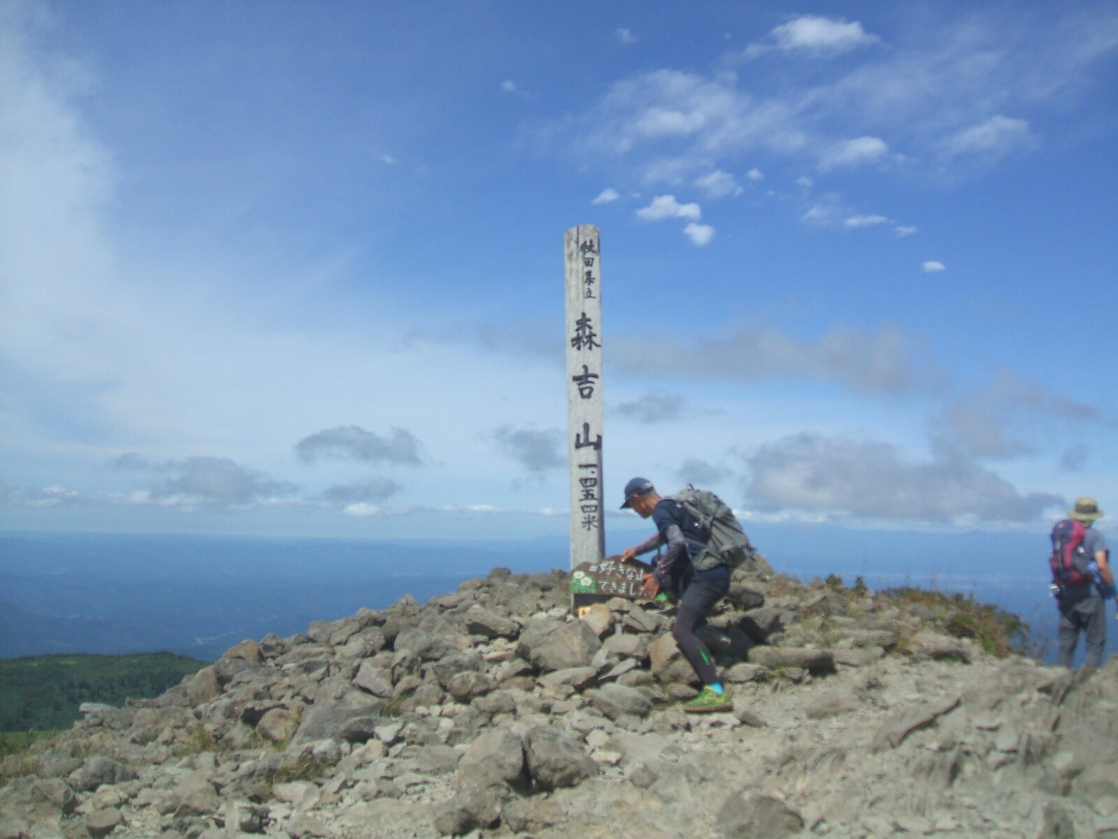 巻道を通らず石森Pに登る。端正な一ノ越Pの手前に森吉神社と避難小屋が見える。