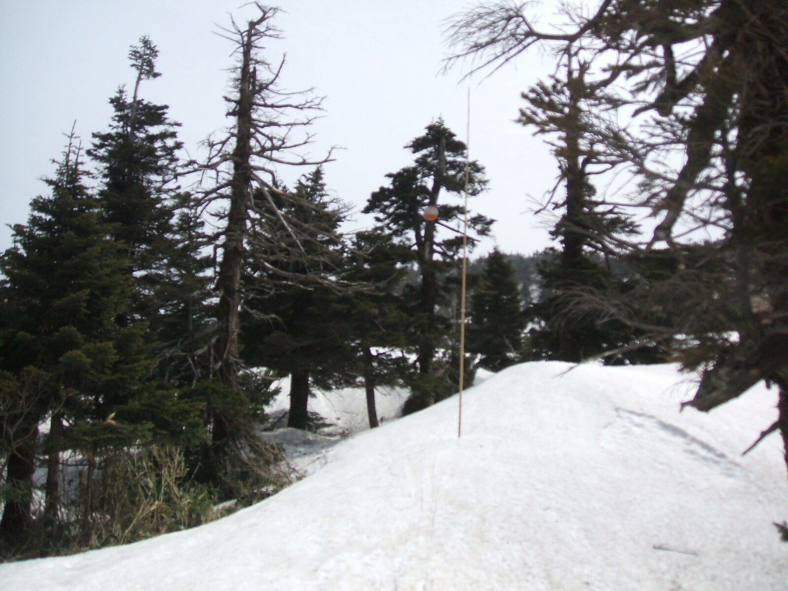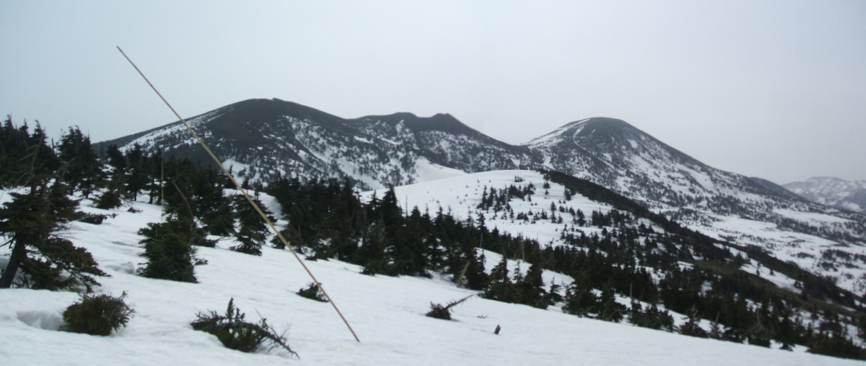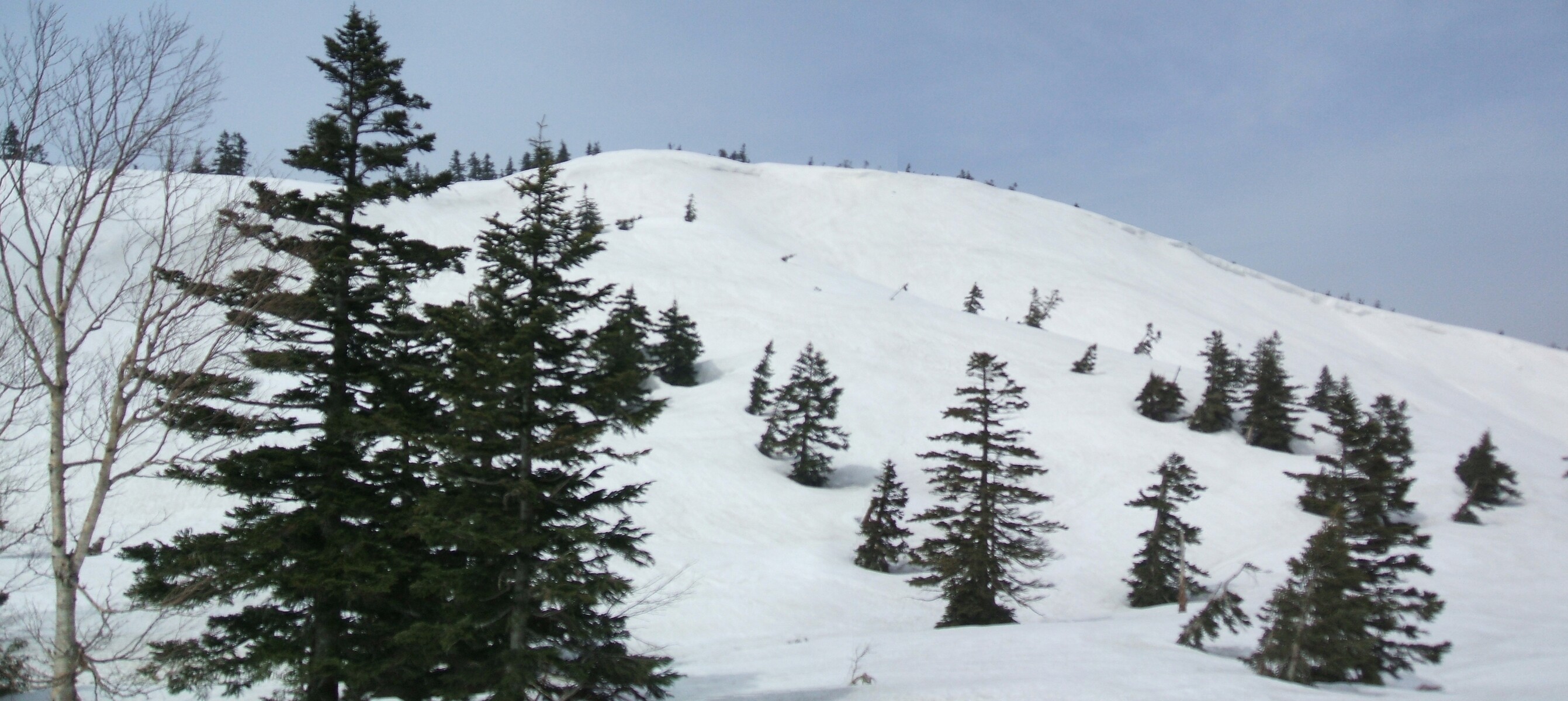 樹氷が出来るが、風裏斜面には大量の雪が積もり、頻繁に雪崩れる為に木が育て無い。