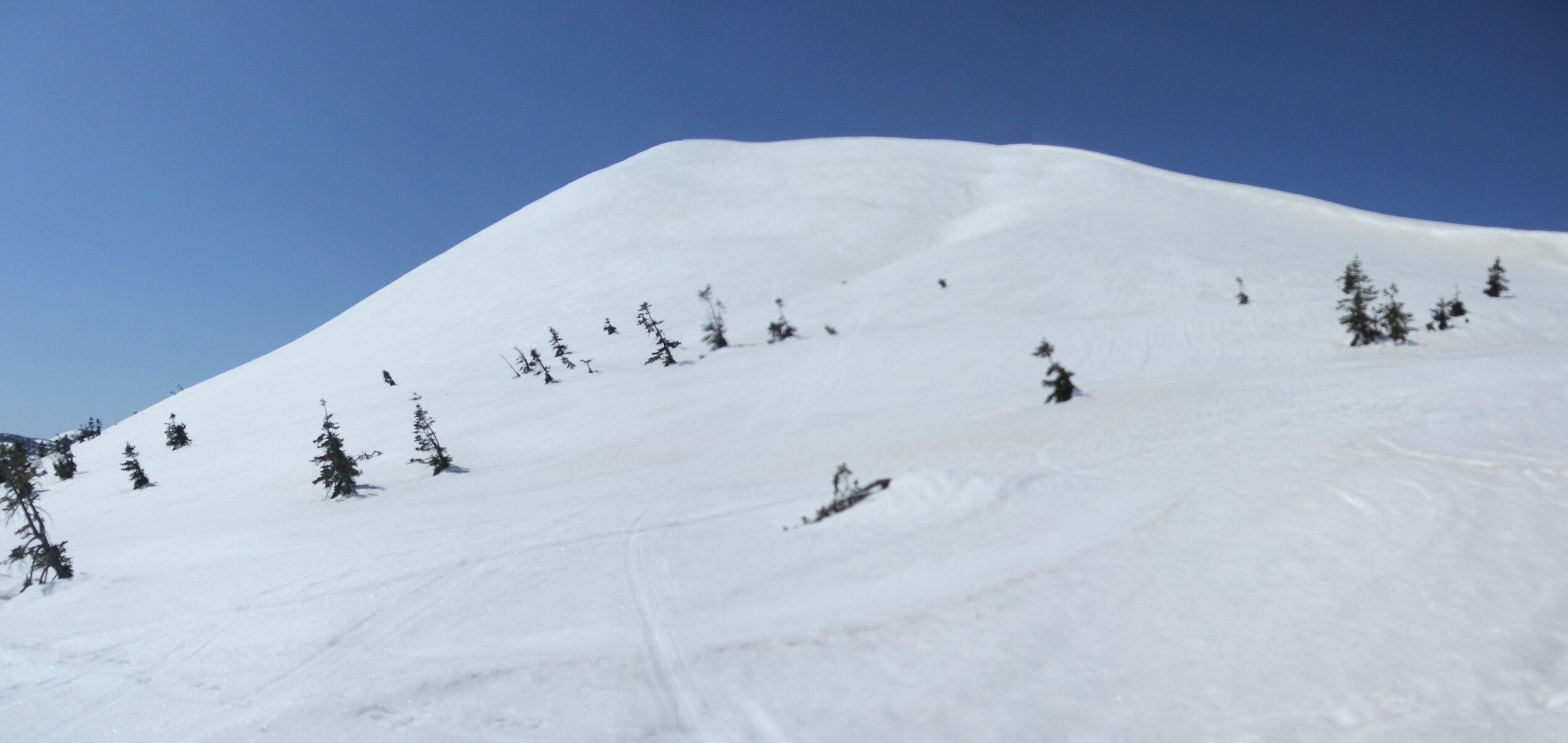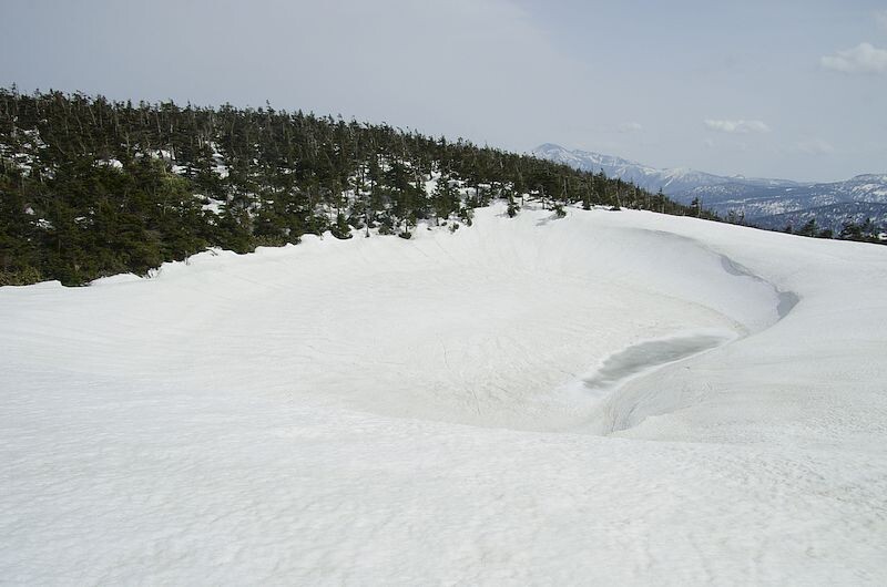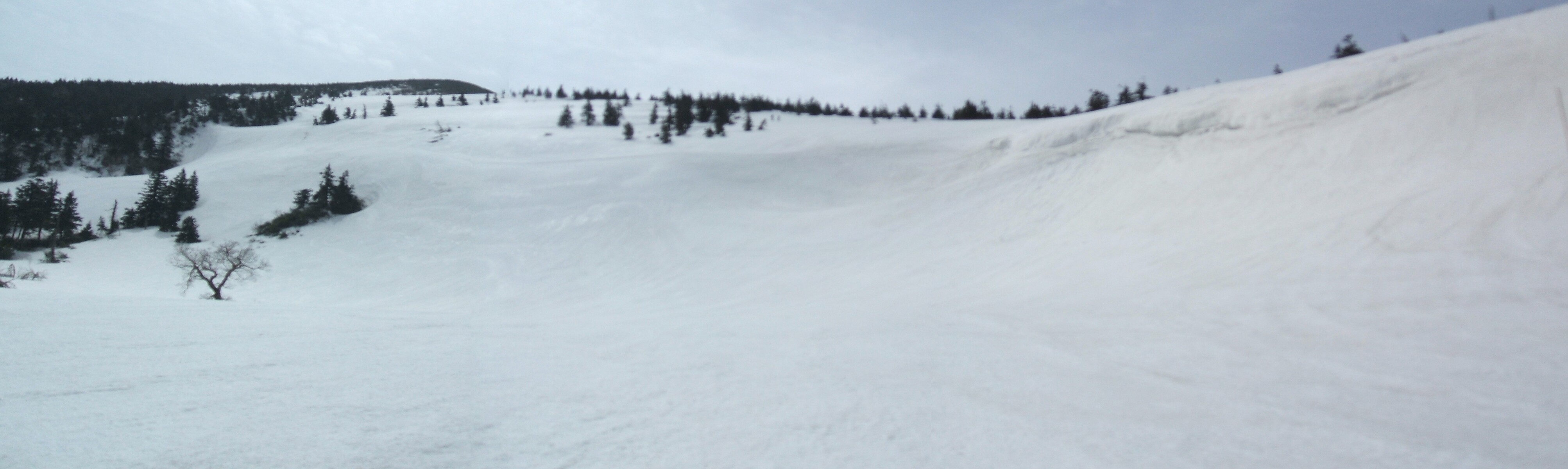 樹氷が出来るが、風裏斜面には大量の雪が積もり、頻繁に雪崩れる為に木が育て無い。