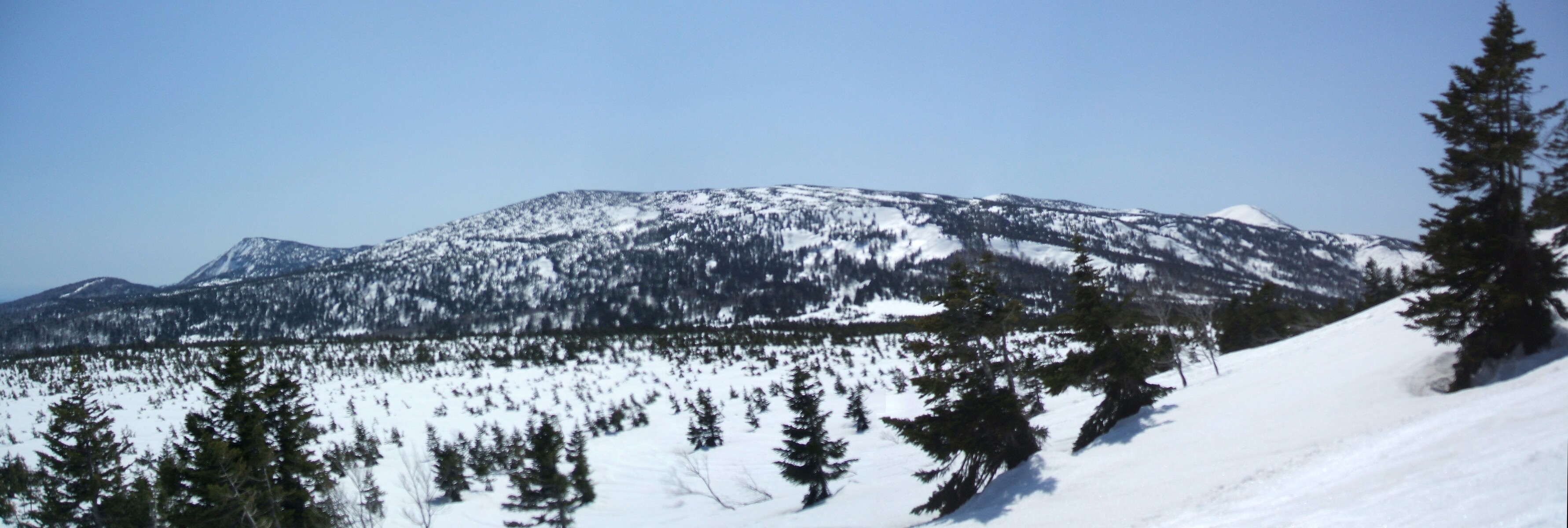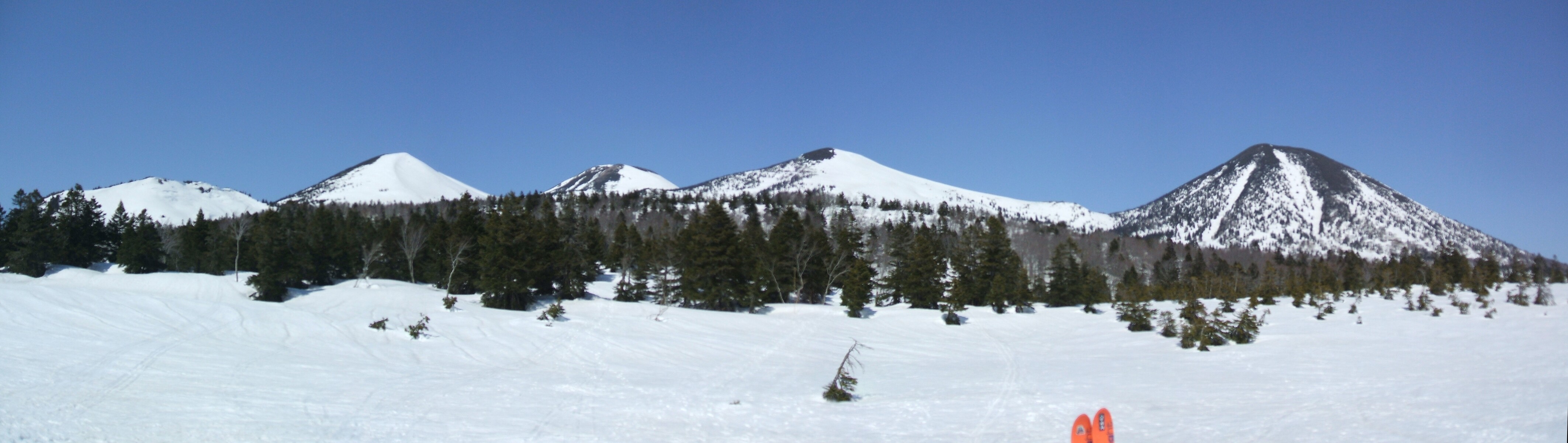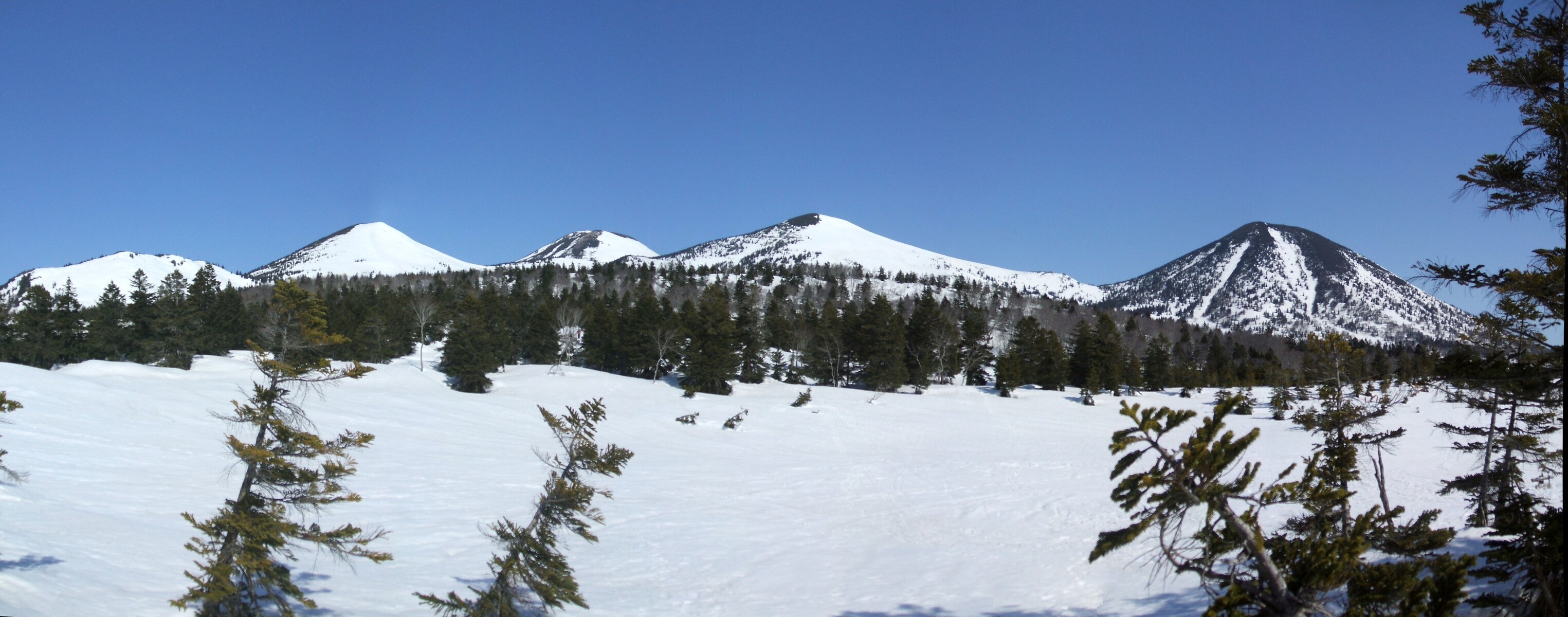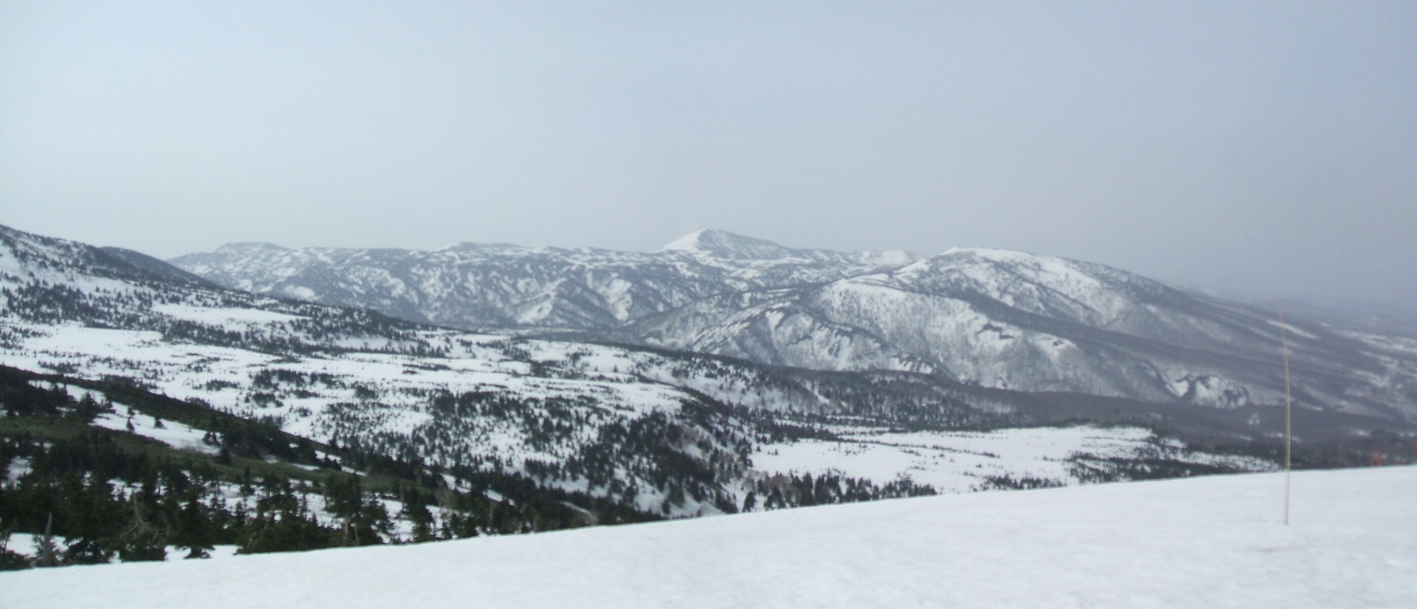 南に硫黄岳。奥に南八甲田連峰の山々。今季行く機会が有るか・・・