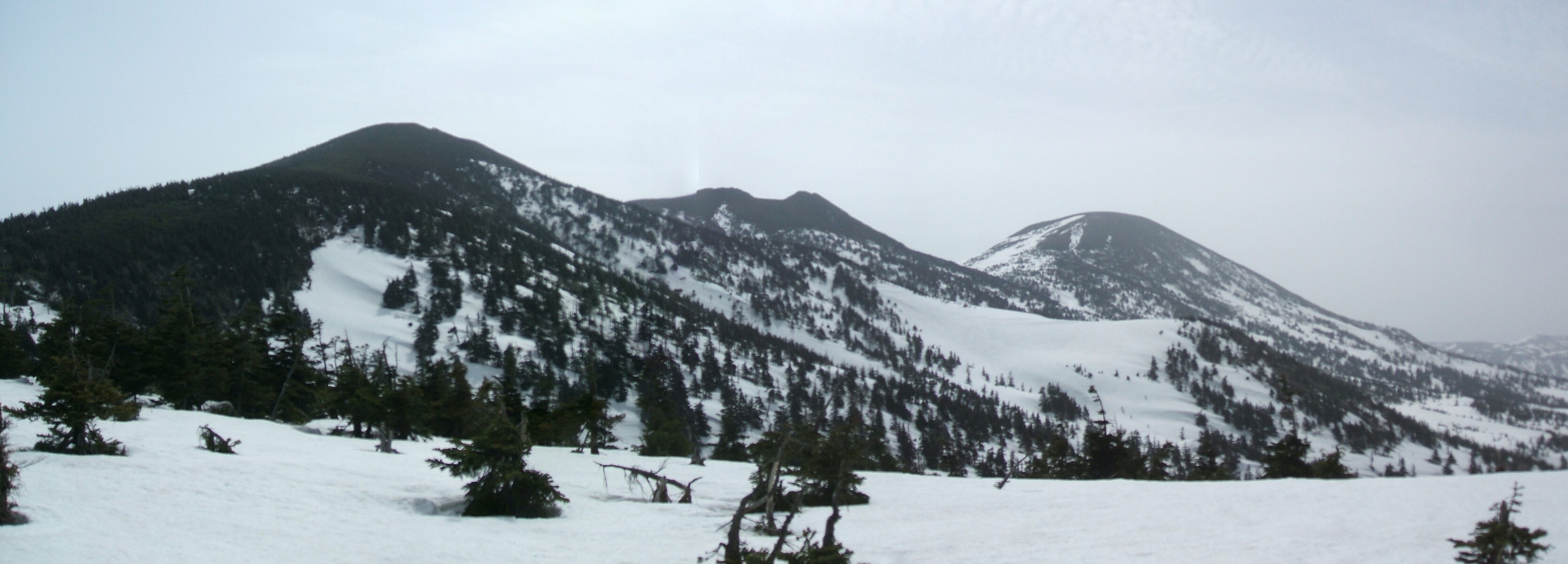 小岳1478m 高田大岳1559m。八甲田大岳は、一番奥に有るので低く見える。