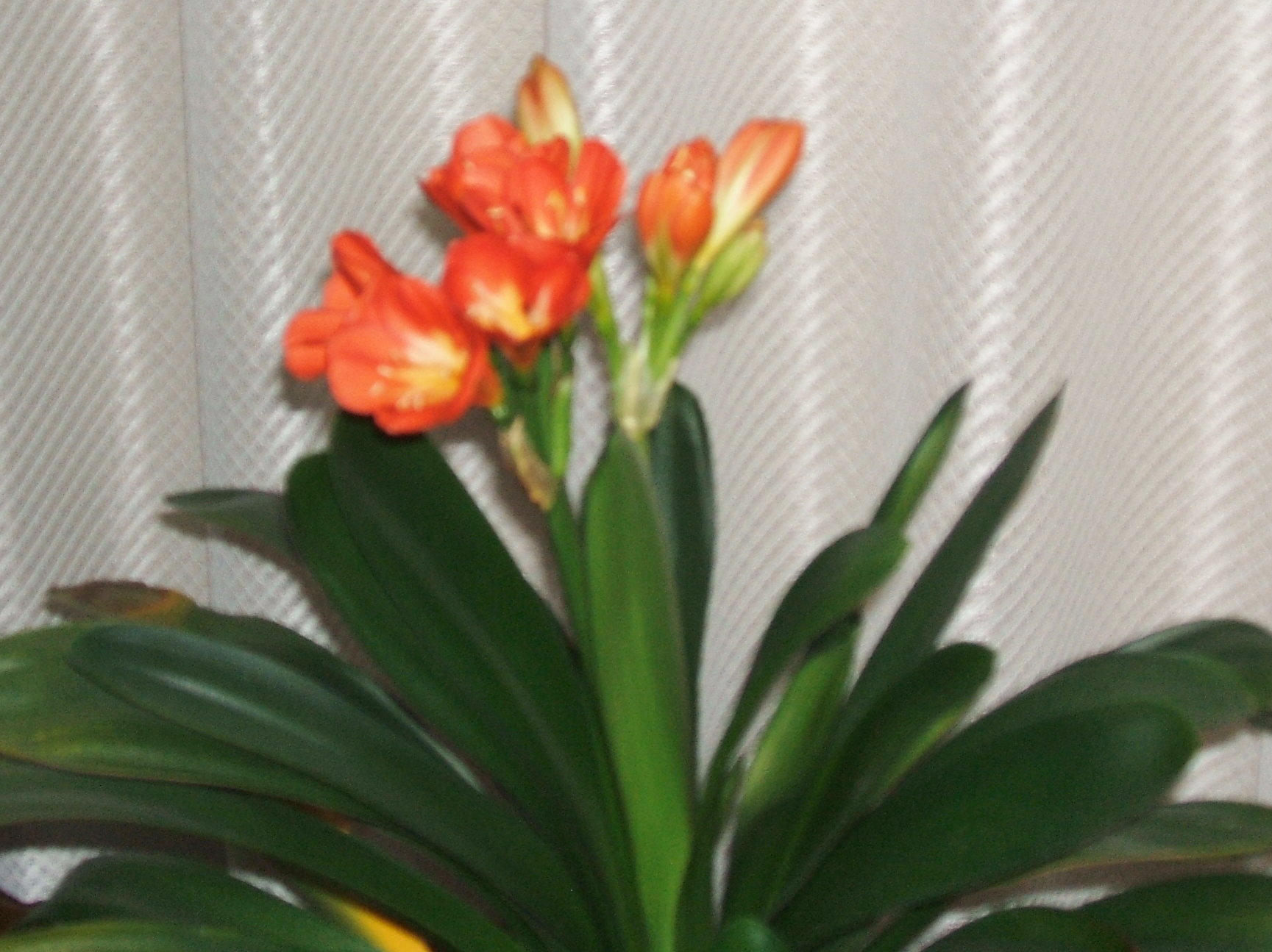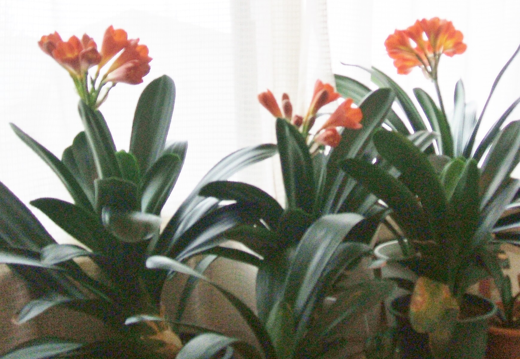 室内育ての君子蘭。春と秋に二度咲いてくれる。
