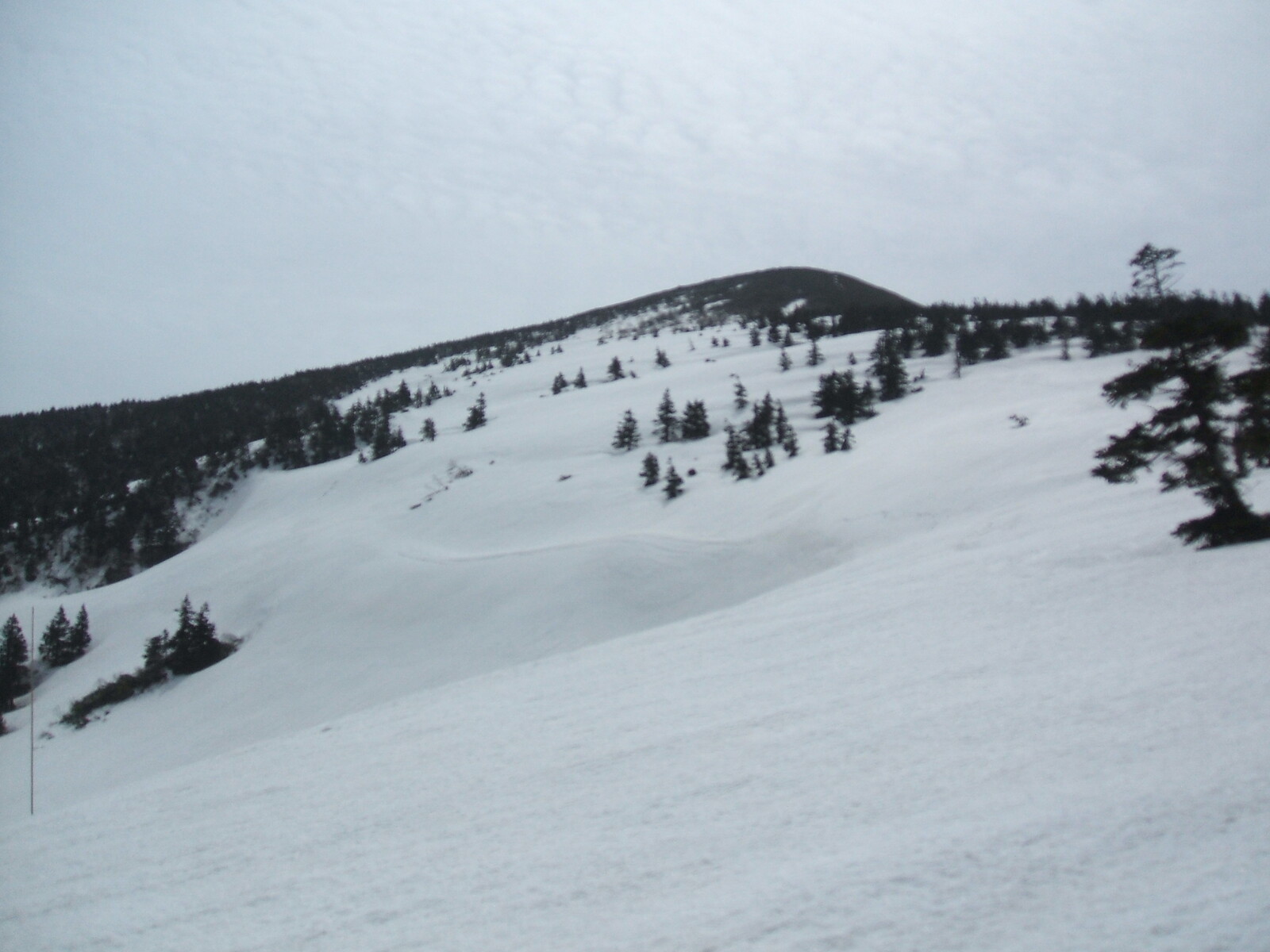 どの山も、東寄りの斜面には立木が無い・・・季節風が当たる北西寄りの斜面には、