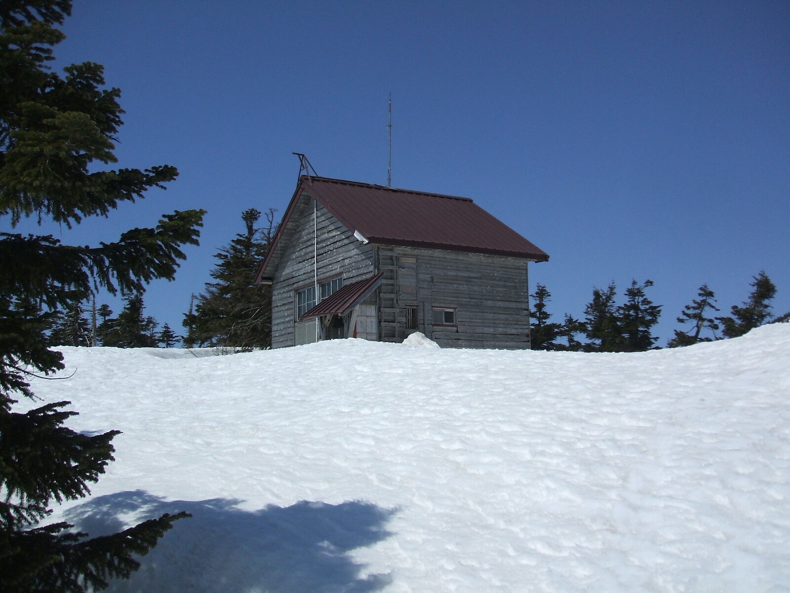 仙人岱避難小屋。外壁板が、くたびれ来ている。