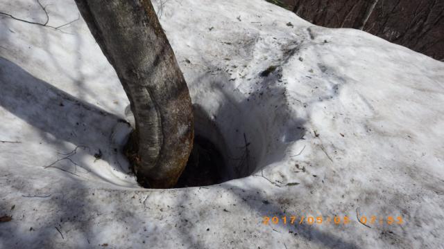 これからの春先に現れる、“根開き”穴だが、これもTree wellの部類に入る。