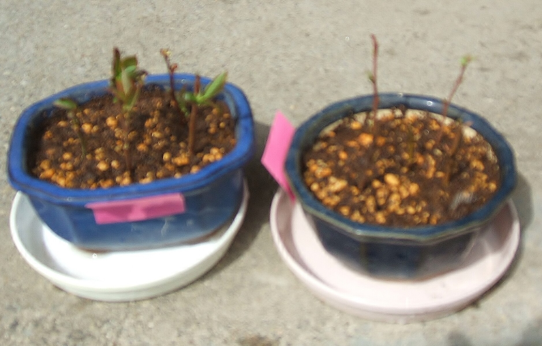 安い・・・思わず3種の苗木を購入。帰宅後、昨日の余ったピートモスと鹿沼土を混ぜ、