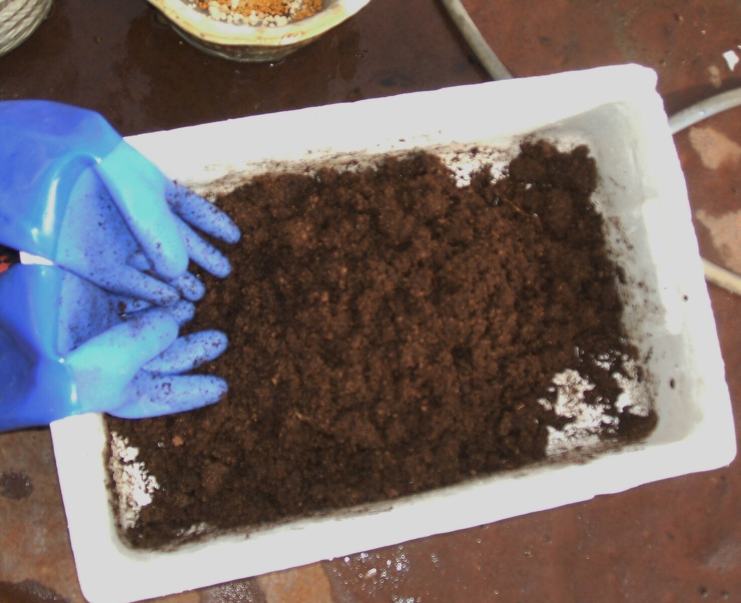 植え付けるには、乾燥してるピートモスに、事前に水を吸わせる必要がある。
