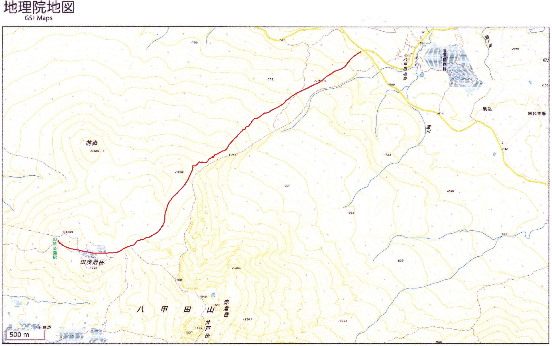 この時は、蒸ノ湯Pに車を置き、定期バスで上がって、滑り降りた時のもの。