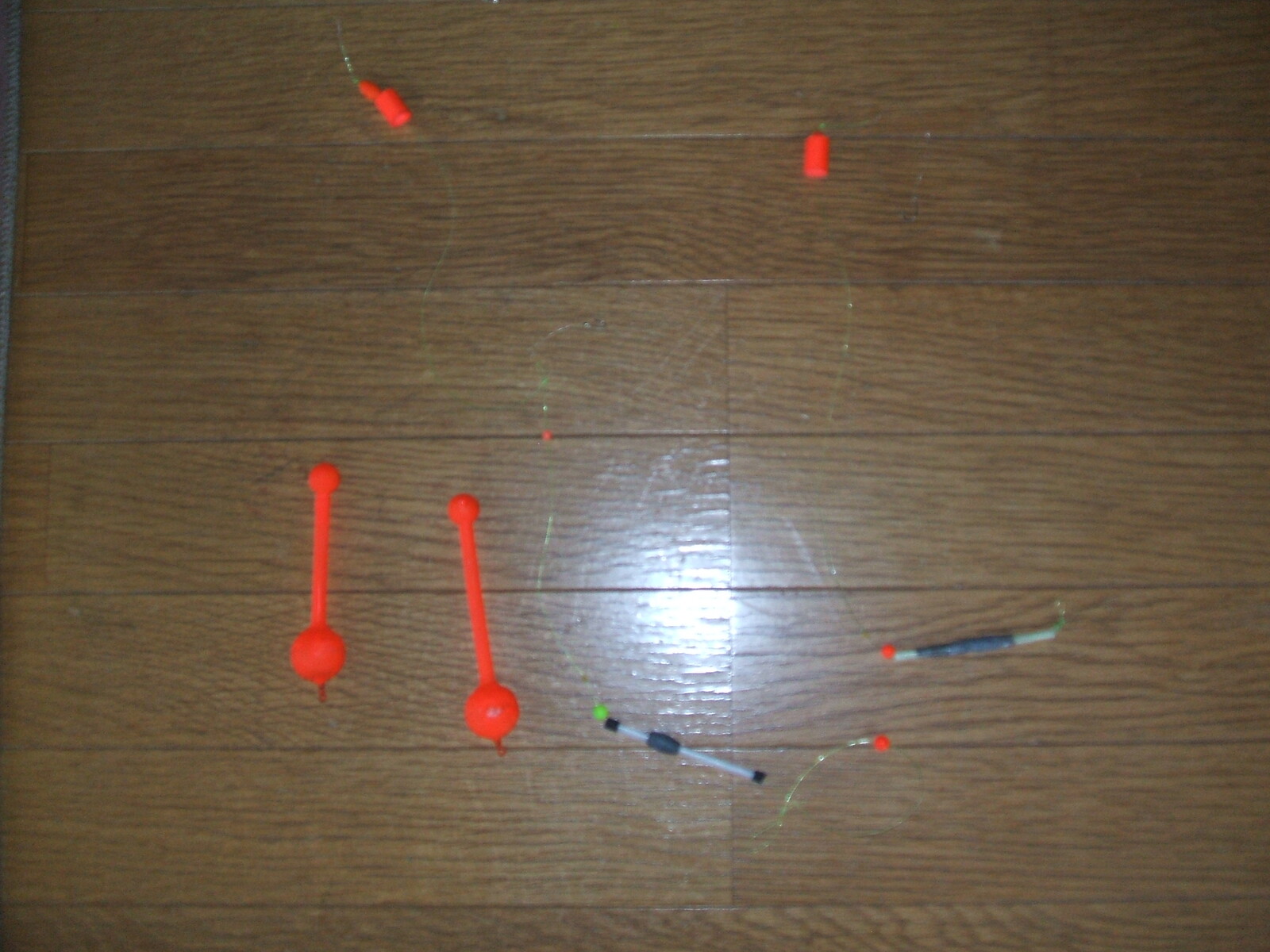 画像の赤いウキは、風が強い日にポイント投入が一発で決まる様に考えたウキ。