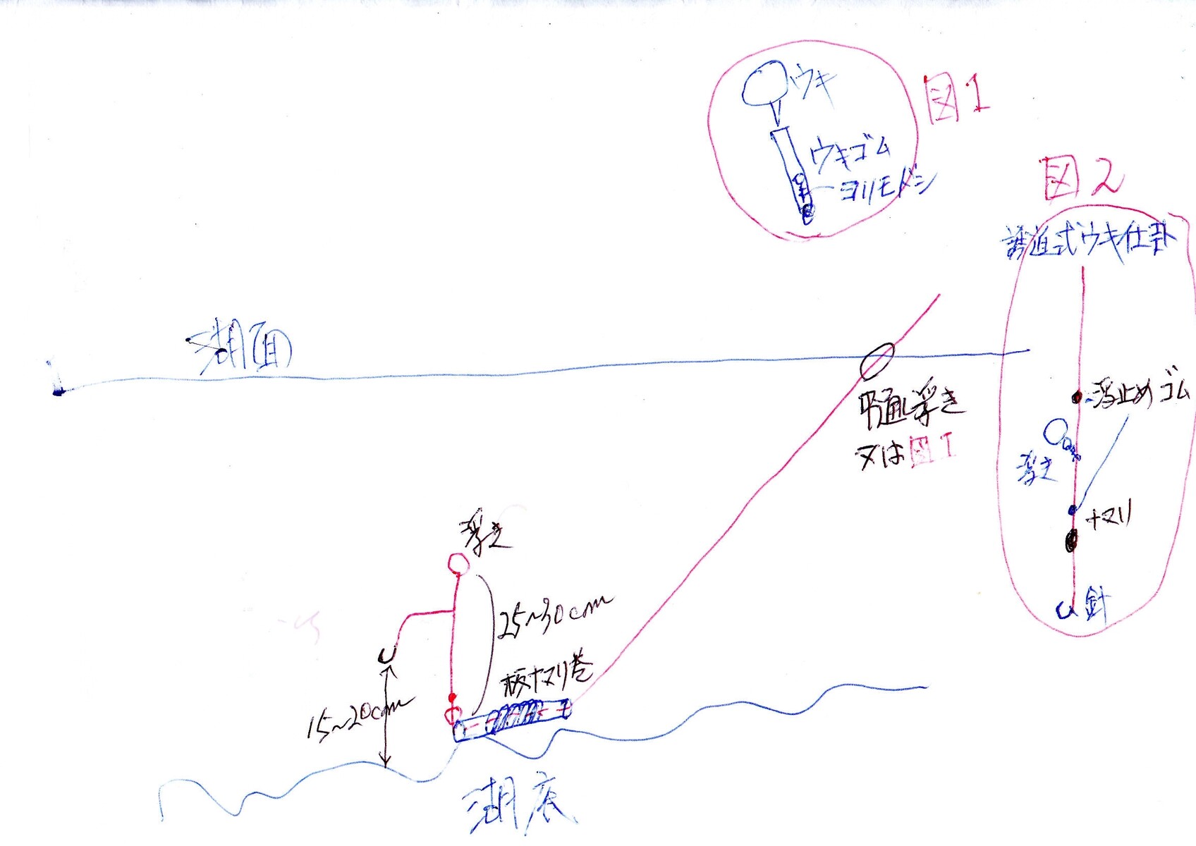 図2は、普段使ってる 延竿の誘導ウキ仕掛け。