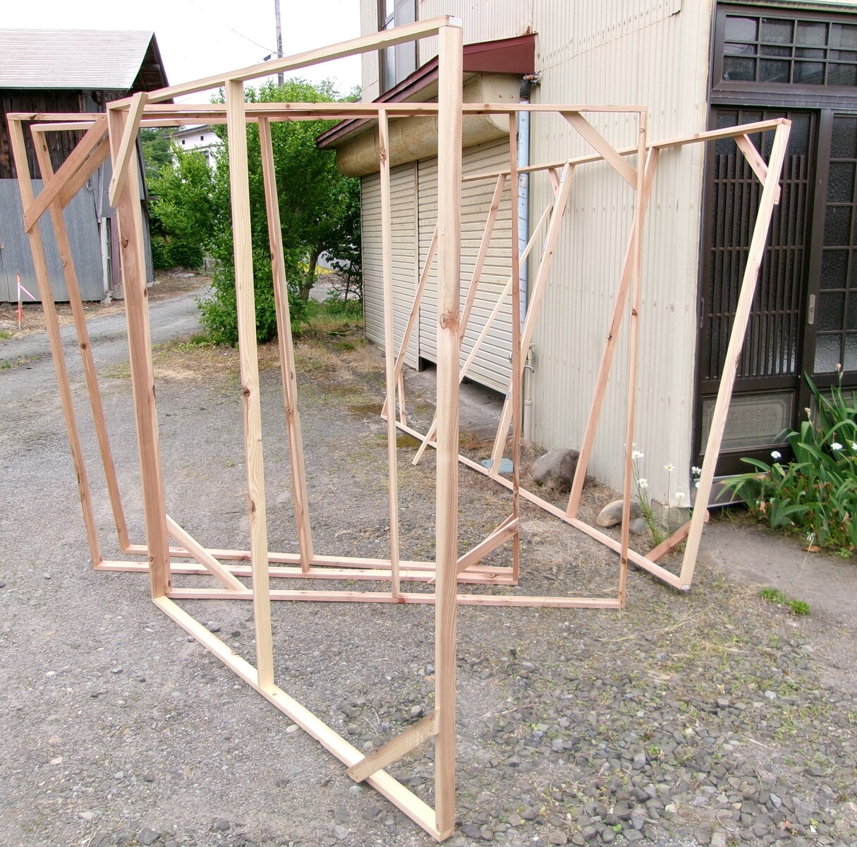 Blueberry用の防鳥囲い制作中の続き。骨組みが出来ました。