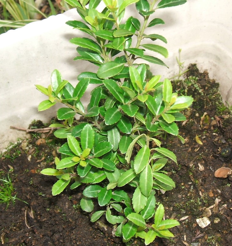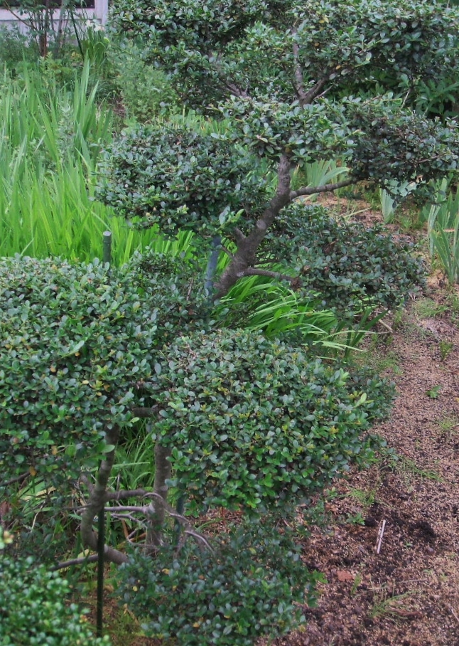実から育てて3年目のもの・・・葉の特徴から、普通の〝イヌツゲ〟ですね・・・