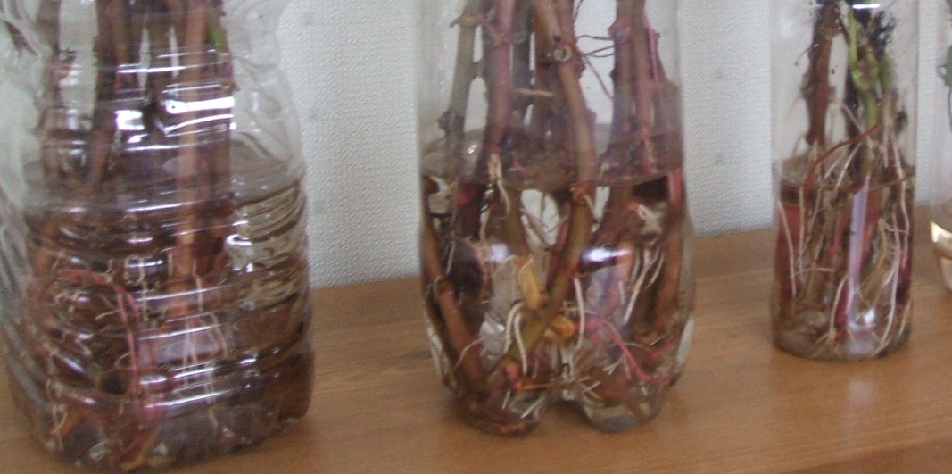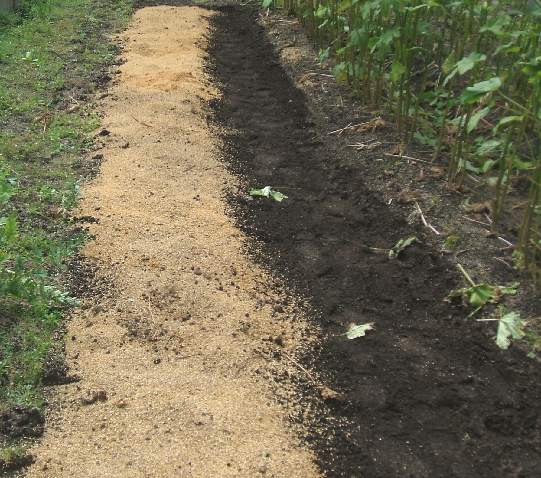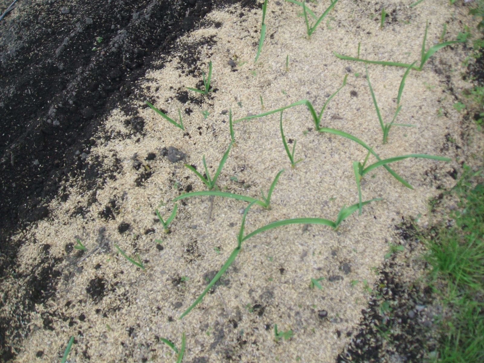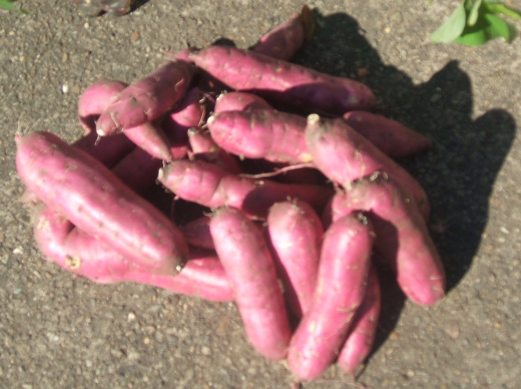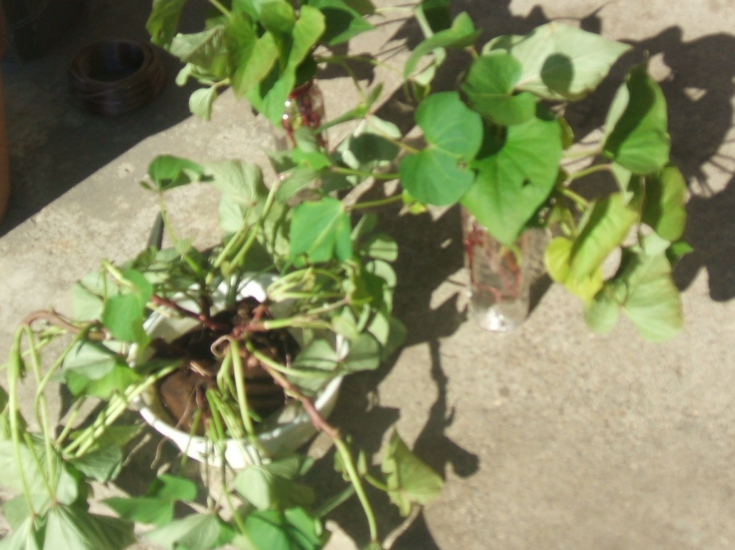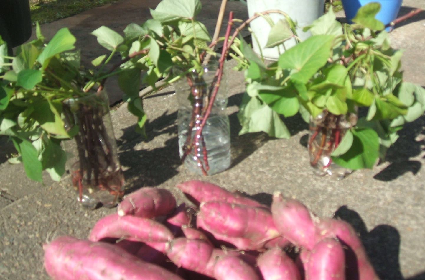 何年振りかで、薩摩芋を4株植えた・・・根付いたのか? 緑の葉が出始める・・・