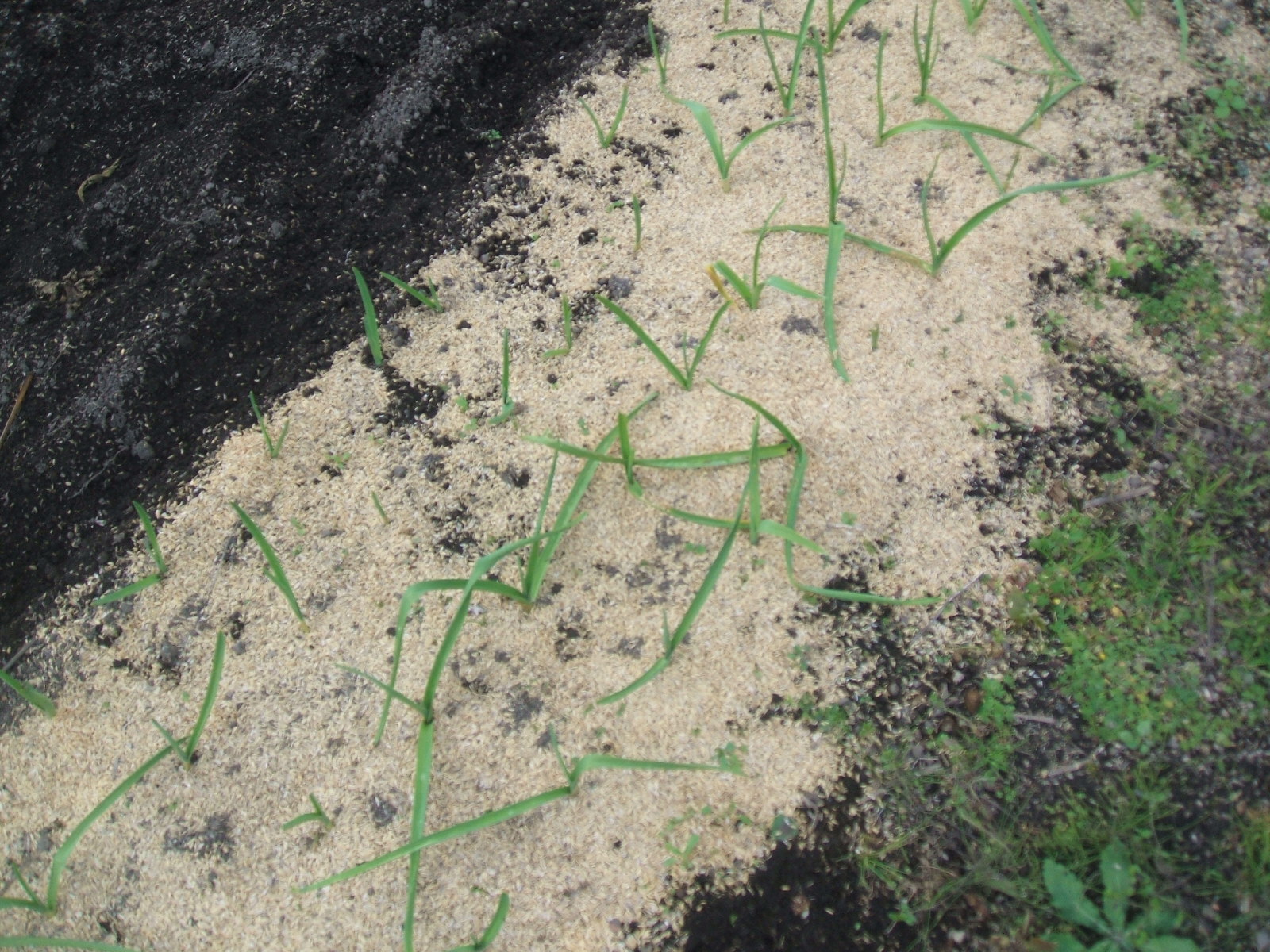 去年の10月中旬に植えた(ニンニクの植え付け・山は初冠雪)が、“茎”を出し始める。