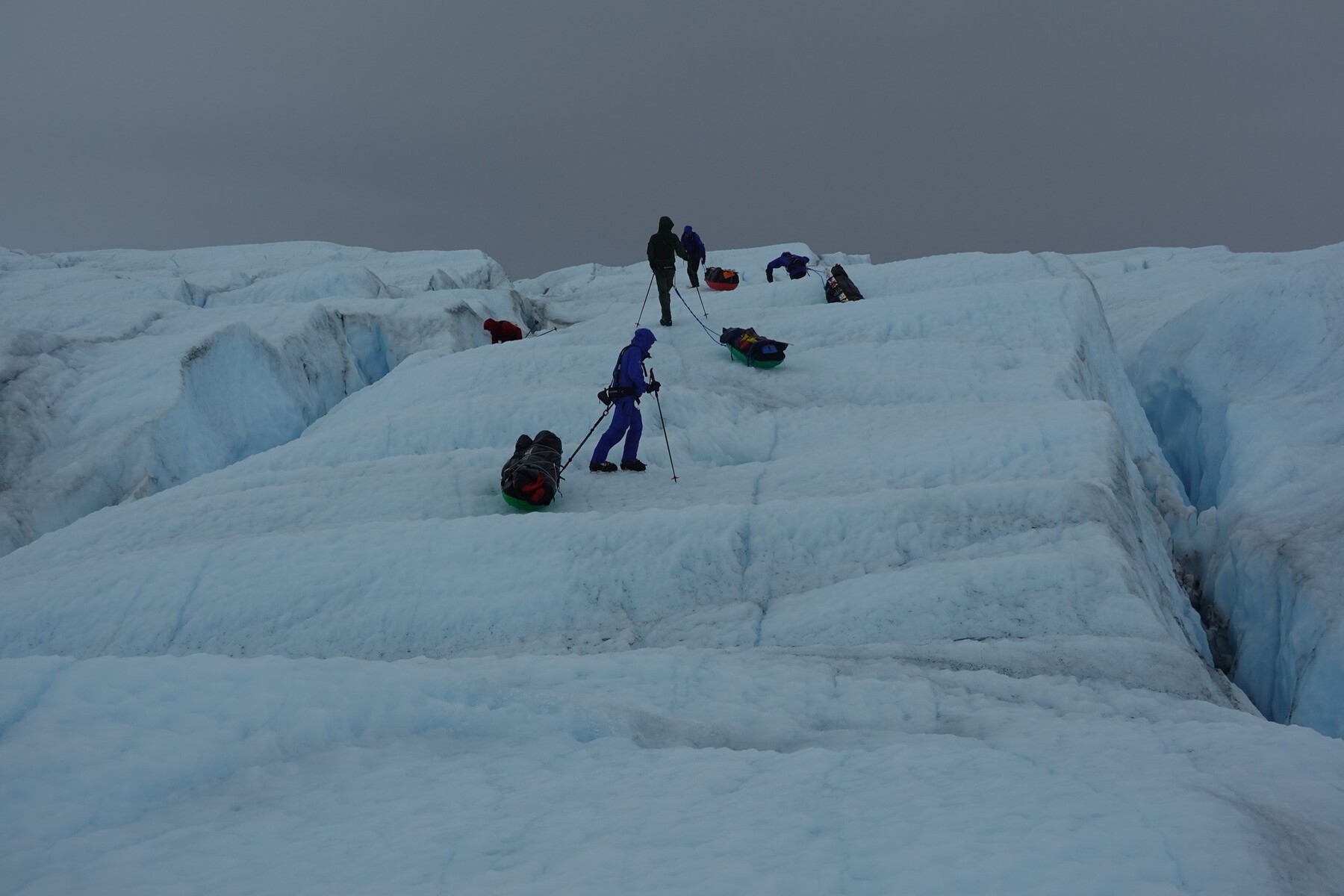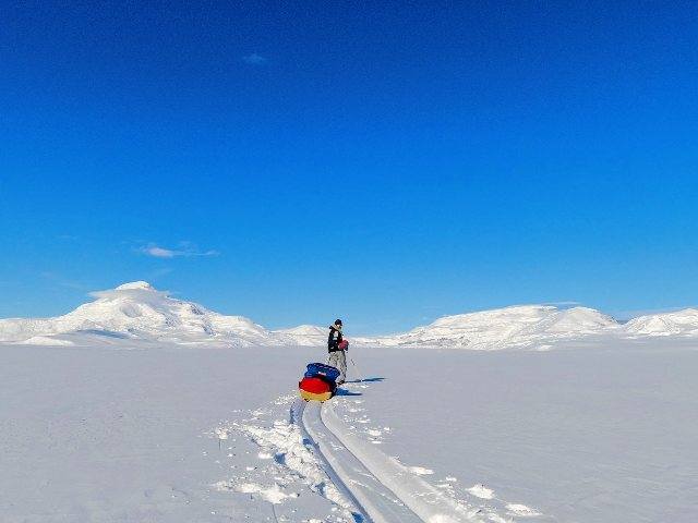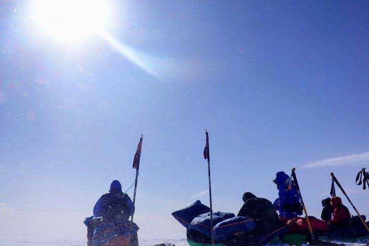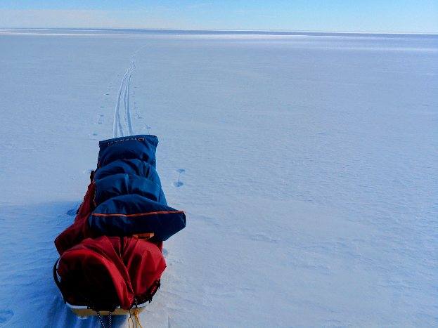 南極大陸海岸線から110キロのソリを引いて歩き始めました。