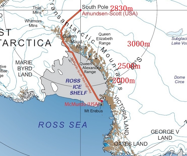 標高2850mの南極点までのひたすらの上り坂
