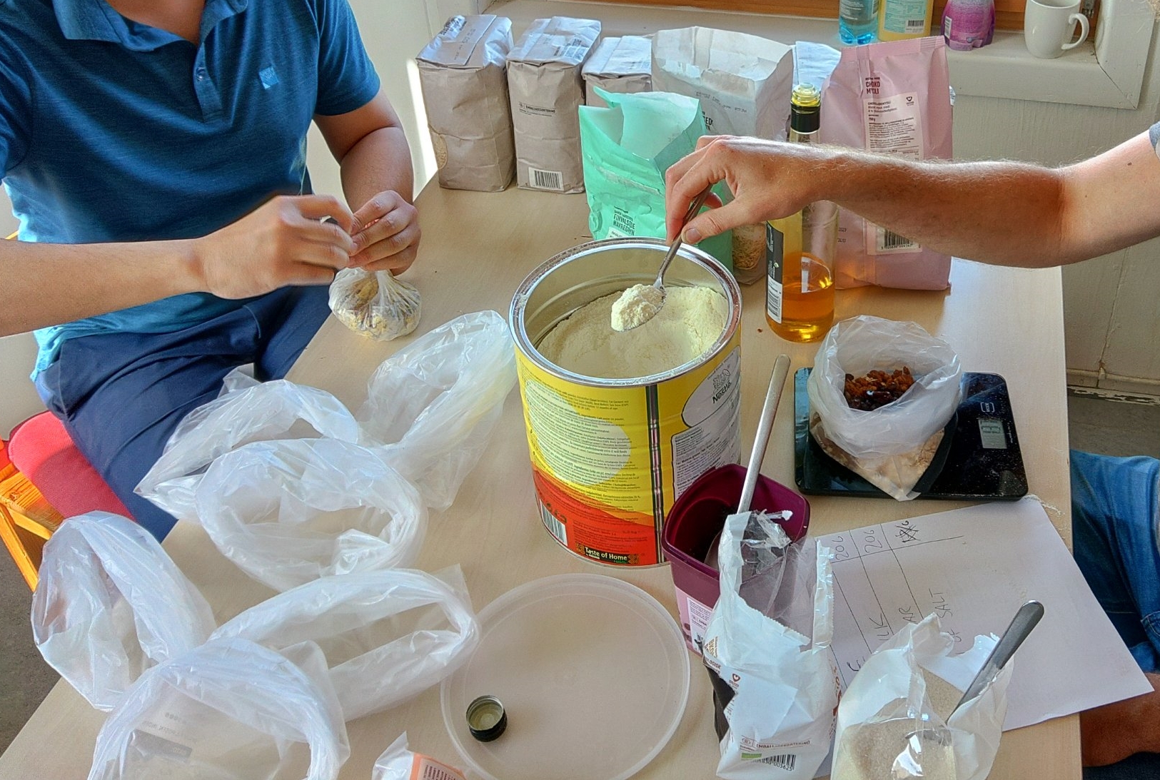 追加の食糧をとろうとする手が震える。