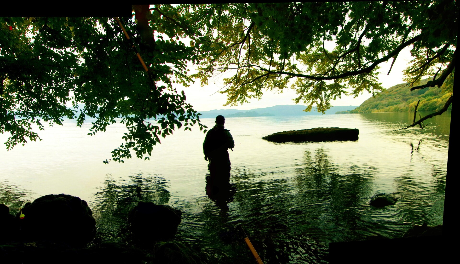 胴長を履いて、太腿まで湖水に浸かっての釣りは、下半身が冷える。